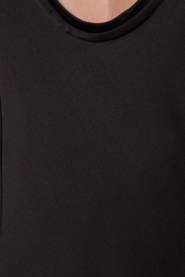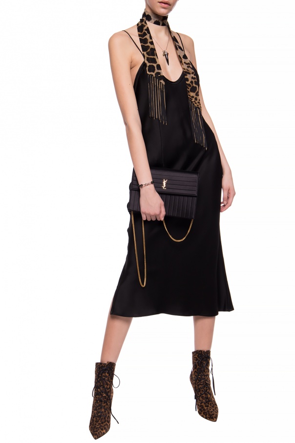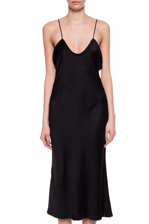 Black slip dress from Saint Laurent. Zip fastening on the side. Round neck. Slit to the side.