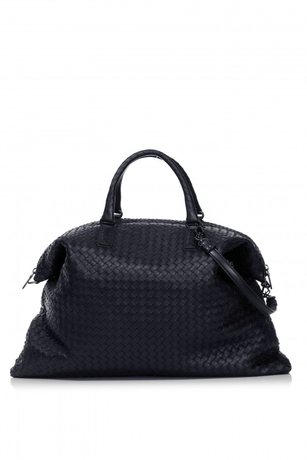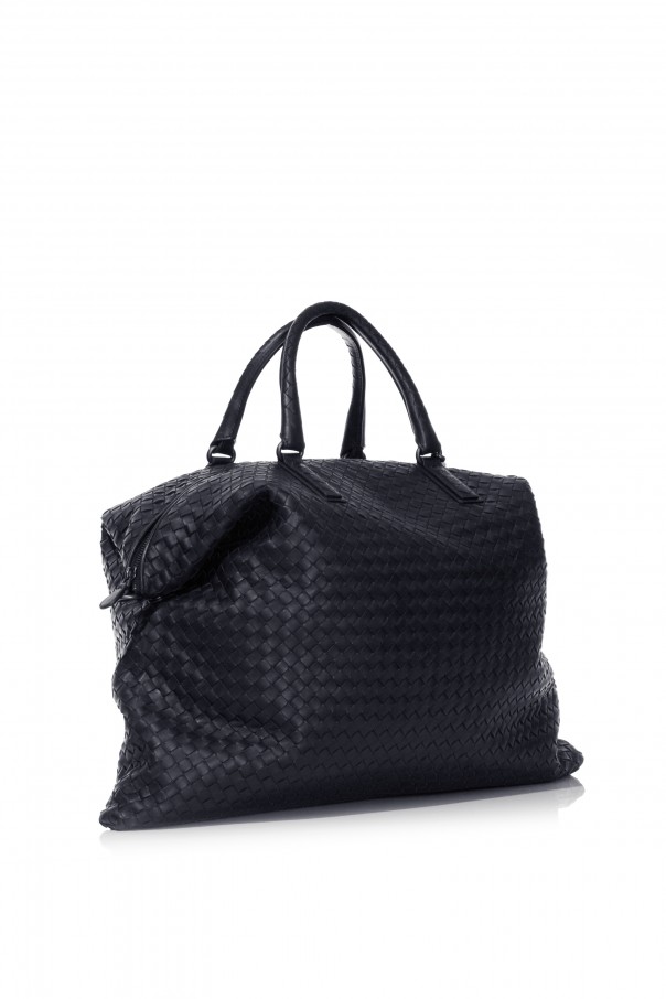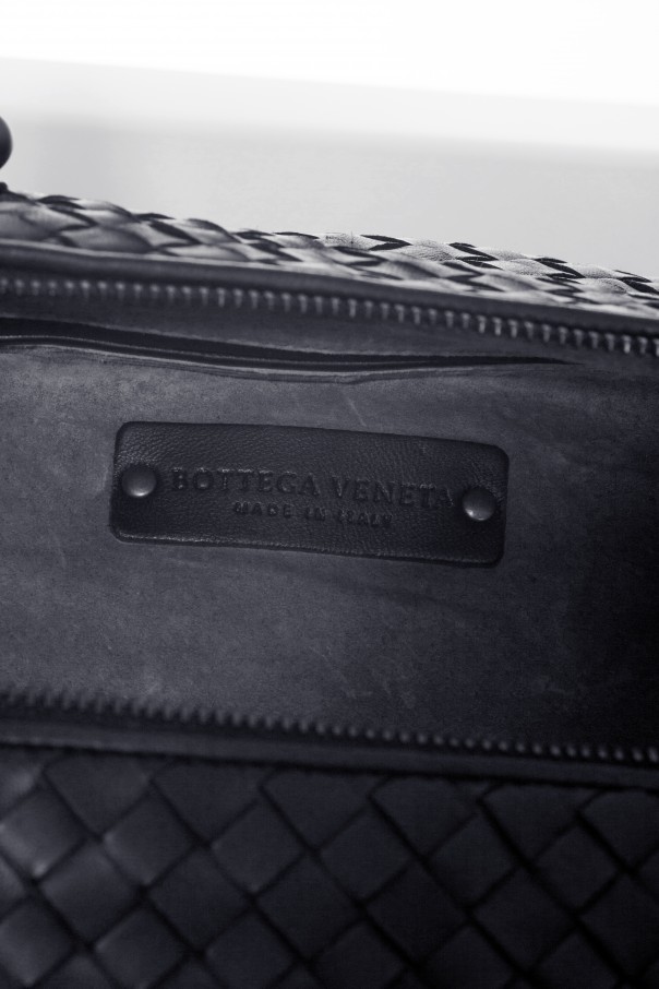 Large \'Convertible\' Bottega Veneta, in black colour. Made of lamb leather, covered with suede from within. One, capacious zippered compartment. In addition, inside side zippered pocket, smartphone sleeve and mirror finished with leather in the same color as bag. Short, detachable, leather belt.