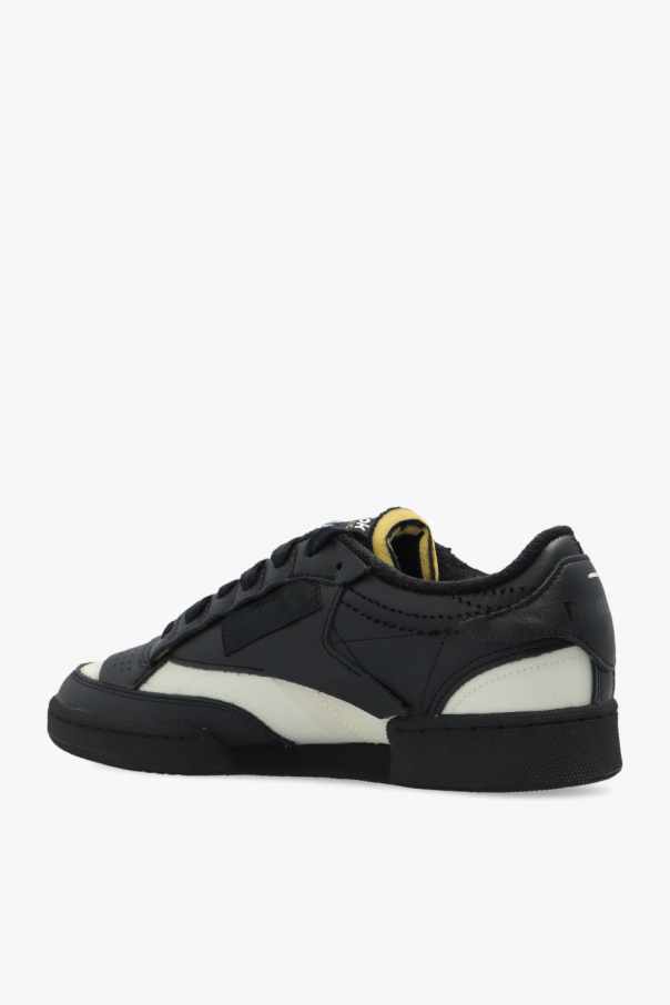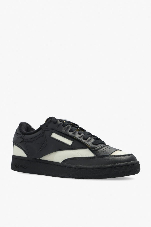 Black and white ‘Project 0 CC Memory Of V2’ sneakers from Maison Margiela x Reebok. Crafted from leather with fabric overlays, this lace-up model sits on a black rubber sole and features a raw-trimmed tongue accentuated with two logo patches, a perforated toe, a patch on the side, a terry fabric lining and the brand\'s signature four stitches moniker accompanied by a logo print on the heel counter.