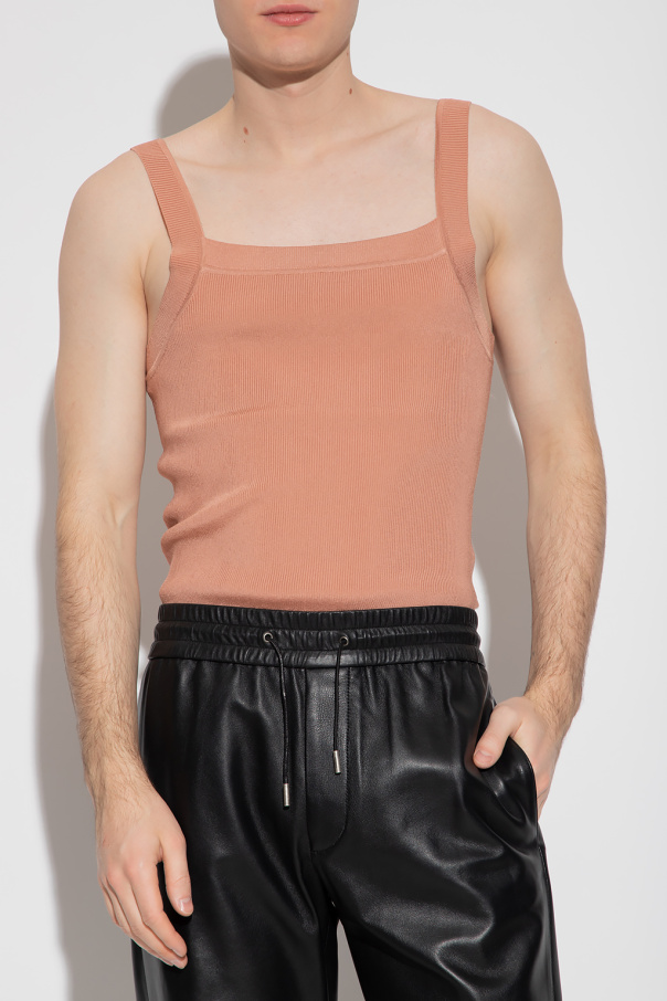 Pink tank top from Dries Van Noten. Crafted with a ribbed texture, this style features a distinctive neckline.