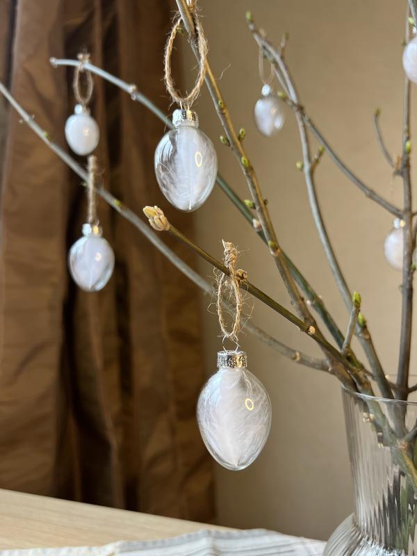 Стеклянные яйца с перьями. В наборе 12 шт.