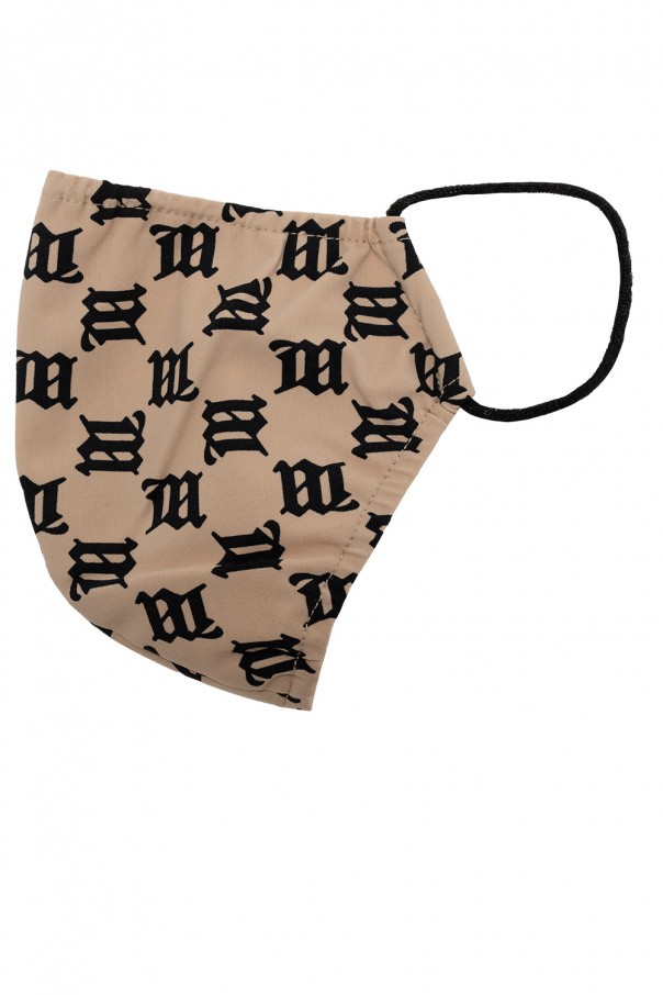 Beige face mask from MISBHV. Crafted from recycled material, this item showcases a printed monogram pattern in black.