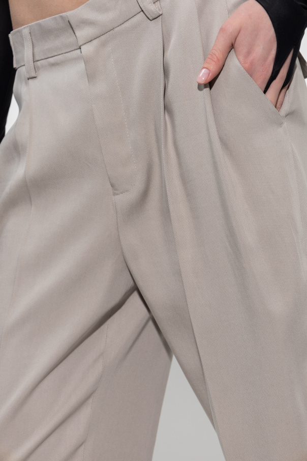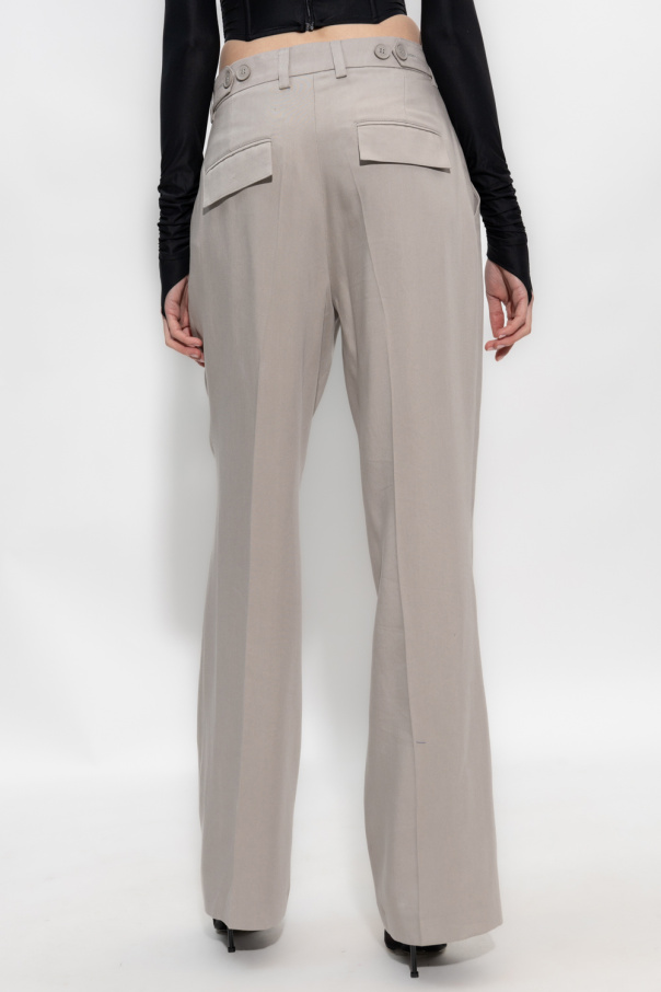 Grey pleat-front trousers from MISBHV, the ‘Garden Of Dreams’ collection. Fastened with a zip and hook, this pair features two front pockets, two buttoned back pockets and flared legs with short vents.
