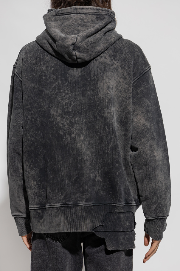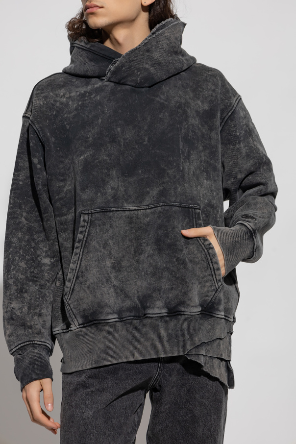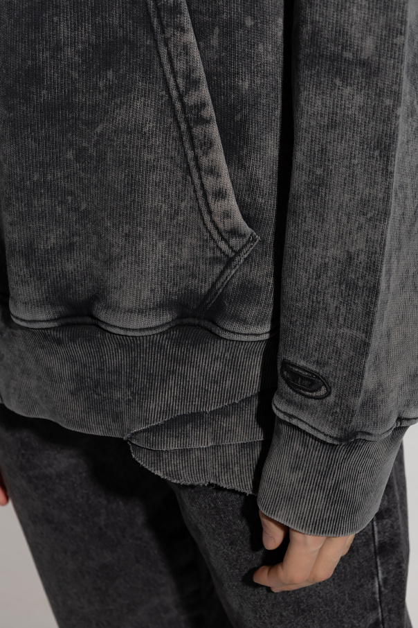 Grey 'S-TOPPER FELPA' hoodie from Diesel. Crafted from cotton jersey with a vintage effect, this style features a kangaroo pocket, taw trims, long sleeves and an elasticated bottom hem and cuffs.