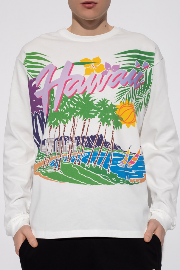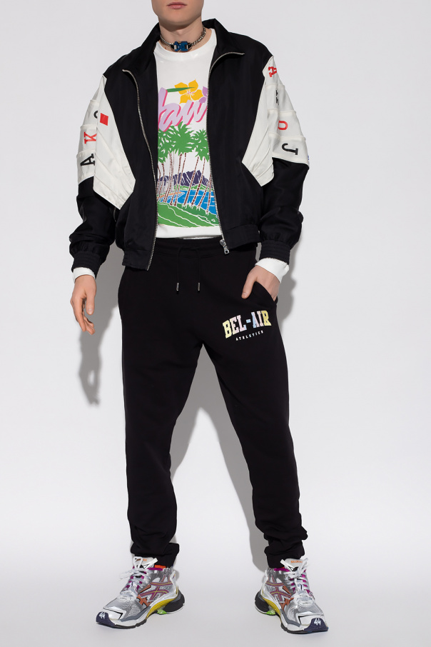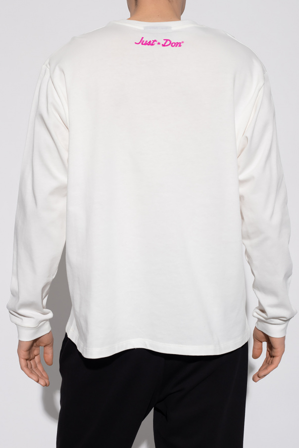 White T-shirt from Just Don. Made of cotton, this garment features a multicolored print on the front, pink logo embroidery at the back and ribbed trims at the neck and cuffs.