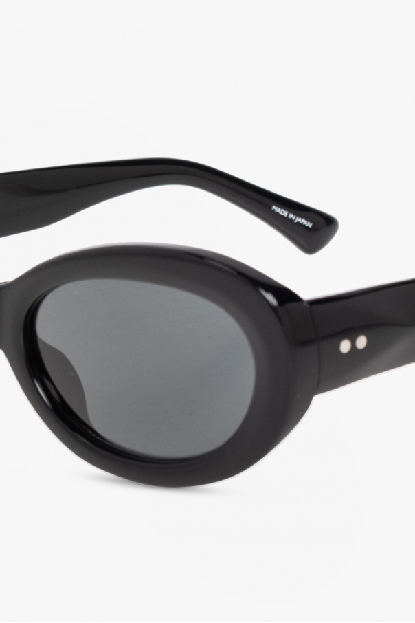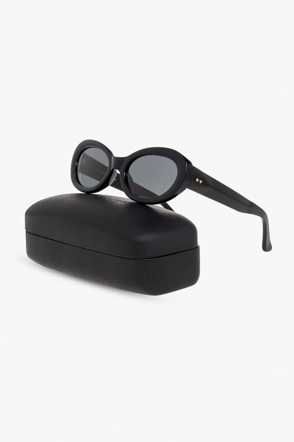 Black ‘211’ sunglasses from Linda Farrow x Dries Van Noten. This pair has oval frames, silver-tone metal applliques on the sides and grey lenses with UV protection. Comes with a case.