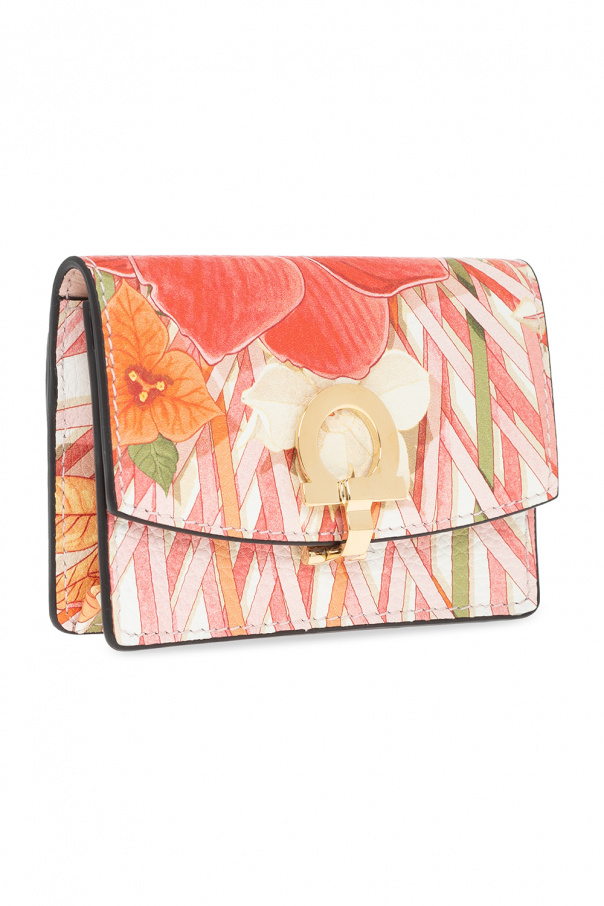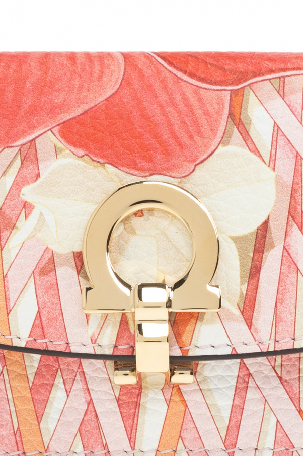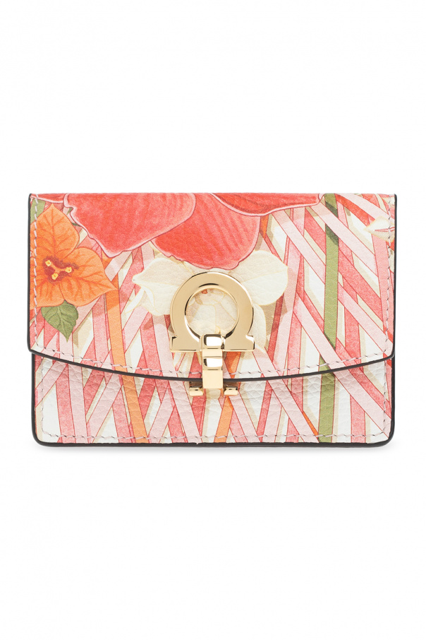 Multicoloured key holder from Salvatore Ferragamo. Made of calf leather, this item showcases an animal motif and a logo application. It is complete with a snap fastening, a back slip pocket, gold-tone metal hardware and one slip pocket and a keyring inside.