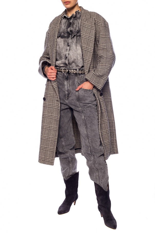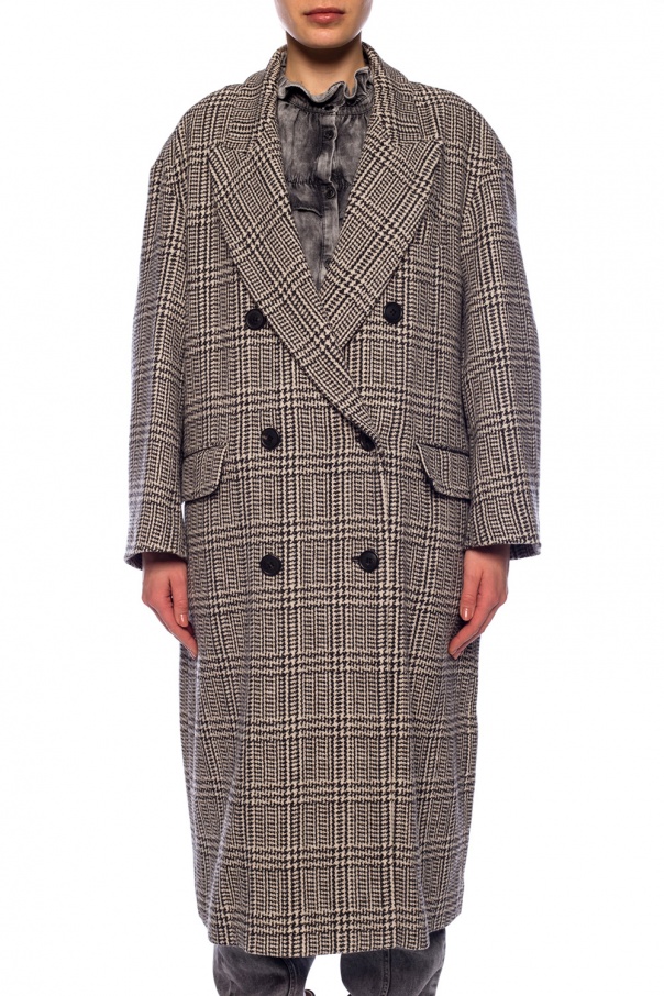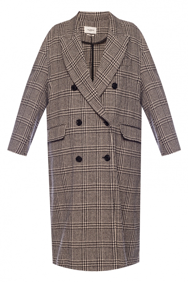 Black and white double-breasted coat with peak lapels from Isabel Marant Étoile. Fastened with buttons. Two flap pockets and a slip pocket on the front.