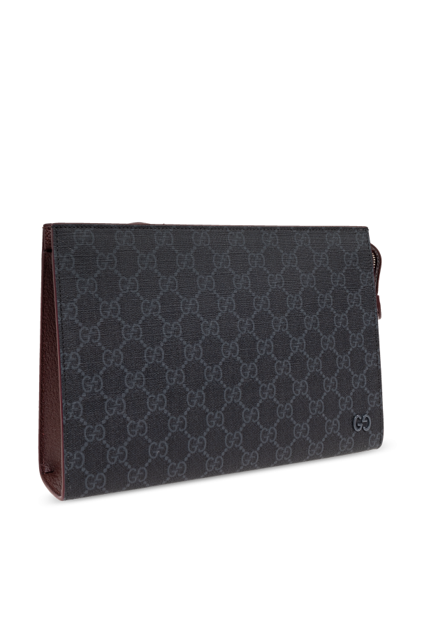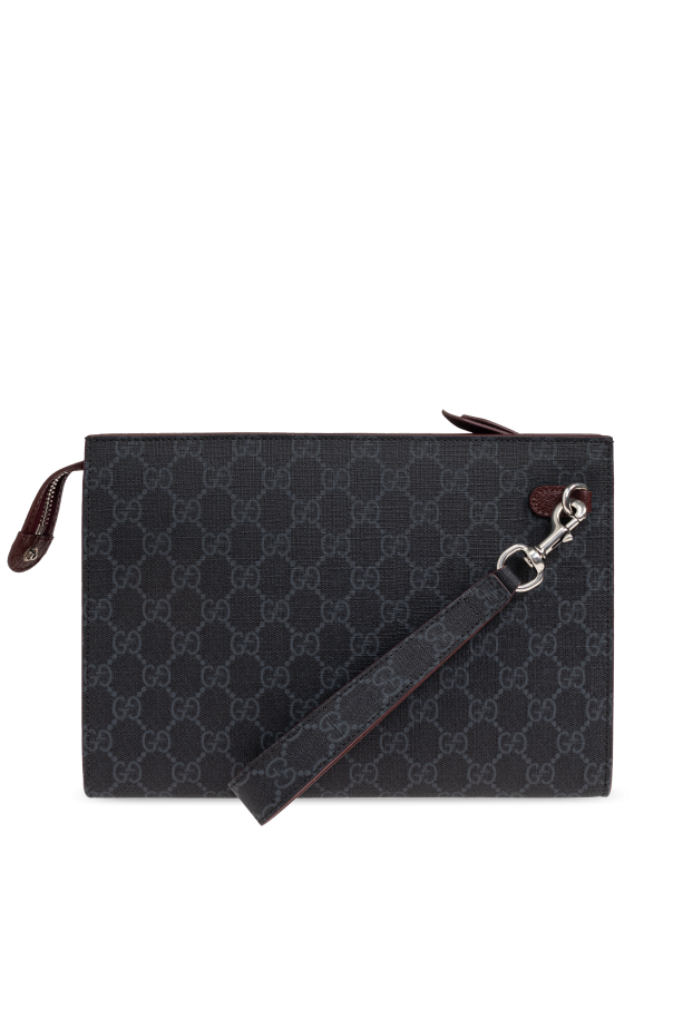 Introducing the pinnacle of sophisticated style—the Gucci Monogram Clutch. This exquisite accessory exudes elegance through its dominant black hue, adorned with a distinctive monogram pattern that subtly alludes to the iconic Gucci brand. Crafted from a blend of premium calfskin leather and durable \'GG Supreme\' canvas, this clutch promises not only timeless beauty but also enduring quality. The clutch\'s design is accentuated with a silver or light gray metal logo, neatly positioned on one of its corners, creating a striking contrast against the black backdrop. The metallic elements extend to a sleek zipper closure and a handy clasp, which harmonizes with the overall aesthetic while offering practical functionality. A tasteful touch of color is added by the edges finished in a contrasting shade of burgundy or brown, lending the piece an air of sophistication. Inside, the clutch is equally impressive, featuring a compartment with six card slots, ensuring your essentials are organized and accessible. The inclusion of a leash with a metal carabiner suggests a thoughtful consideration for the modern individual\'s need for convenience and security. Why Purchase This Product? Unmatched Elegance: The clutch\'s refined design and monogram pattern signify a luxurious aesthetic that stands out. Premium Materials: Crafted from \'GG Supreme\' canvas and calfskin leather, with metal accents, for durability and style. Functional Details: Equipped with a zipper closure, card slots, and a leash with a carabiner for practical use. Iconic Branding: Embellished with Gucci\'s recognizable logo, this clutch is a testament to distinguished craftsmanship and design.