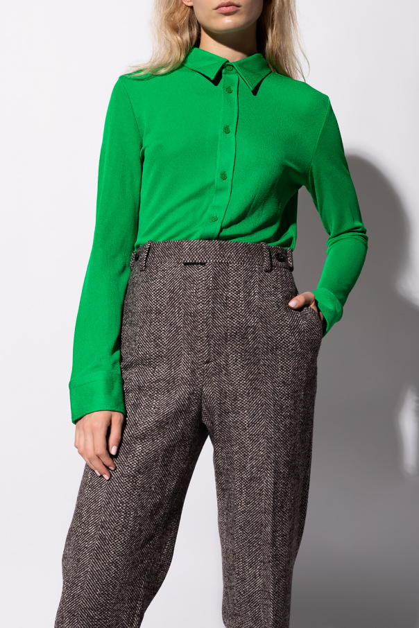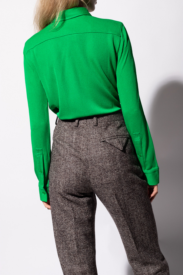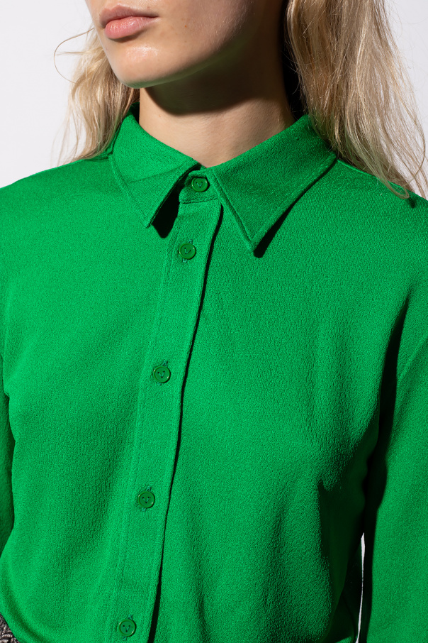 Green shirt from Bottega Veneta. Fastened with buttons, this garment is complete with buttoned cuffs.