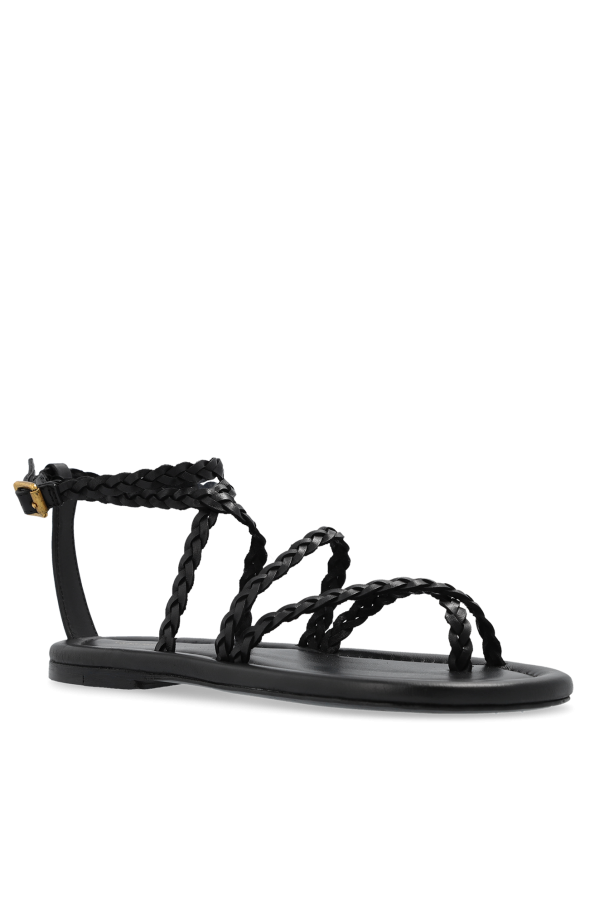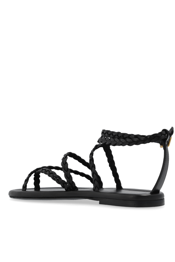 Introducing the \'Penelope\' Sandals by Golden Goose: a harmonious blend of luxury and casual elegance. Crafted with meticulous attention to detail, these sandals feature an all-black design made from 100% genuine leather, ensuring both durability and style. The intricate braided straps gracefully envelop the foot, offering an aesthetic appeal alongside necessary support. The ankle is adorned with a small, gold buckle, allowing for adjustability while adding a touch of sophistication. The flat sole, with heights of 1cm at the front and 2cm at its peak, promises utmost comfort for all-day wear. Rendered in a sleek black, the sole complements the overall design, making the \'Penelope\' sandals a versatile addition to any wardrobe. Why Purchase the \'Penelope\' Sandals? Superior Quality: Crafted from 100% genuine leather, offering longevity and luxury. Exquisite Design: The braided straps and gold buckle detail provide a unique, elegant look. Comfort & Versatility: Designed for all-day comfort with a flat sole and adjustable ankle strap, perfect for any occasion. Elegant Branding: From the renowned designer Golden Goose, known for exclusive, high-quality footwear.