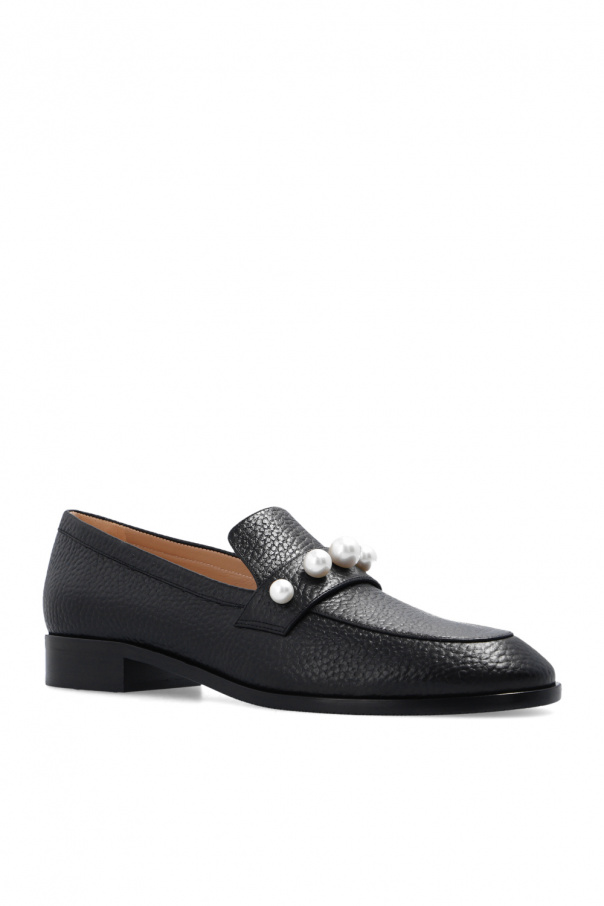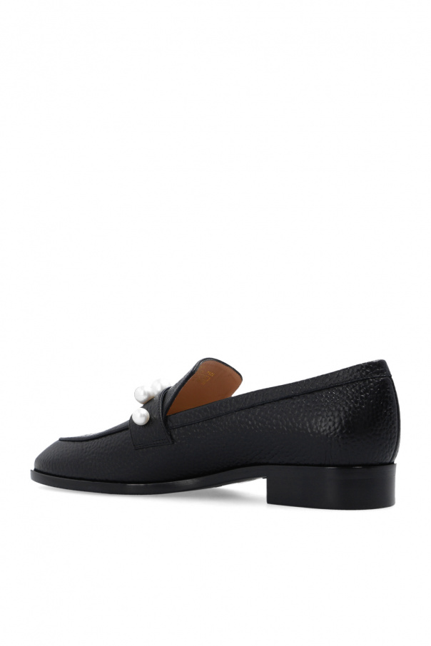 Black ‘Goldie’ moccasins from Stuart Weitzman. Made of leather, this model features white applications and a black rubber sole.