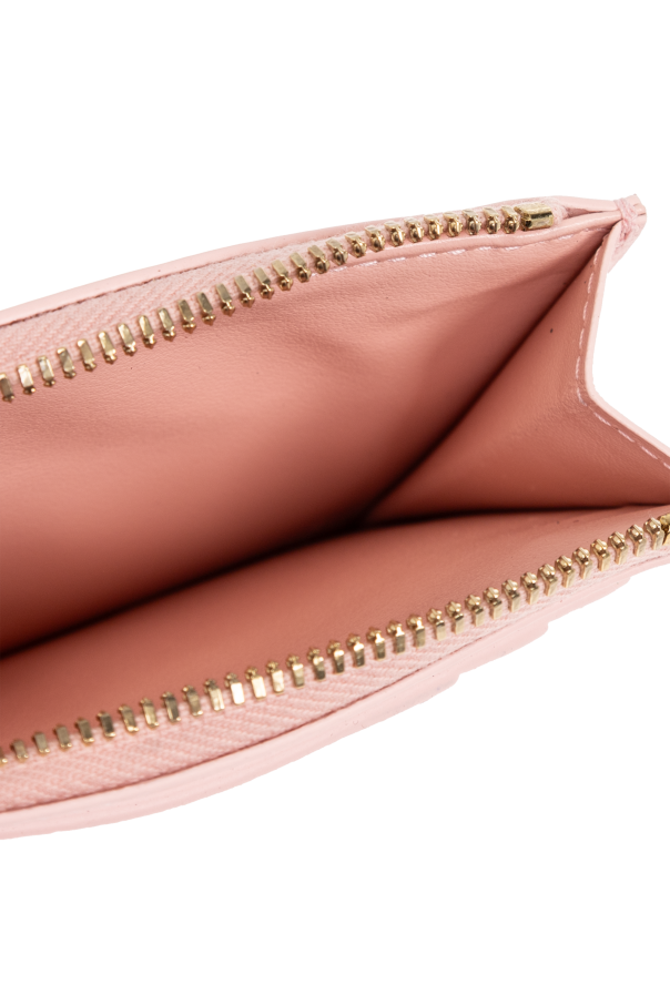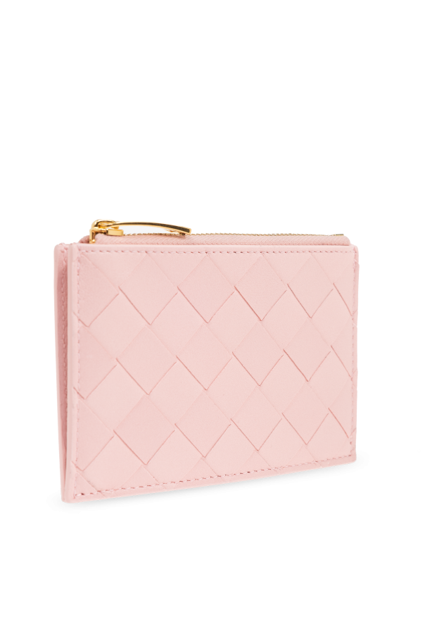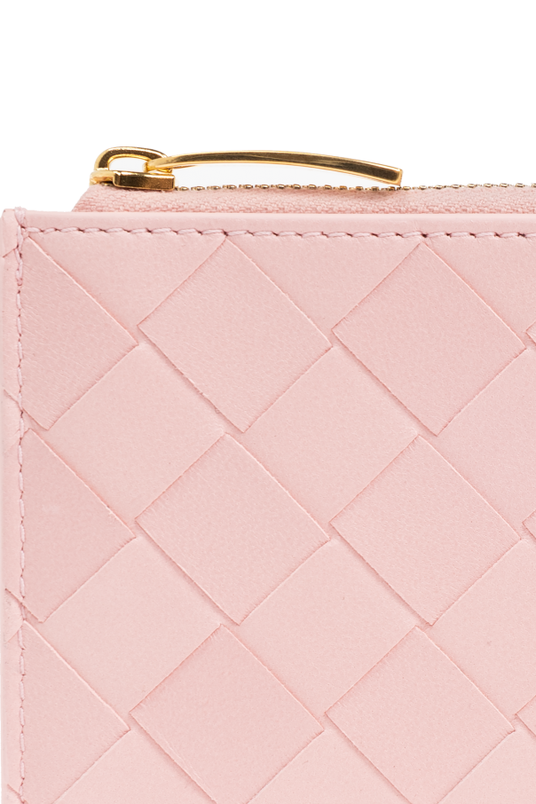 Introducing the Card Holder by the illustrious Bottega Veneta, a masterpiece of exquisite design and unparalleled craftsmanship. This exclusive pink card holder is a testament to the brand\'s commitment to redefining traditional artistry through innovative methods. Crafted from premium leather, its durability and luxurious aesthetic are palpable. The card holder boasts a classic rectangular shape, with a front adorned in a distinctive woven pattern, imparting an air of elegance and uniqueness. The interior, also lined with leather, enhances its prestigious allure. Its delicate pastel pink hue adds a subtle, feminine touch, making it a chic accessory for the discerning individual. Featuring a golden zipper at the top, this holder ensures ease of access to your cards, while the back is equipped with practical pockets for credit cards or business cards. Why choose this product? Exclusive design by Bottega Veneta High-quality leather construction Elegant woven pattern Practical card storage pockets Delicate pastel pink for a feminine touch