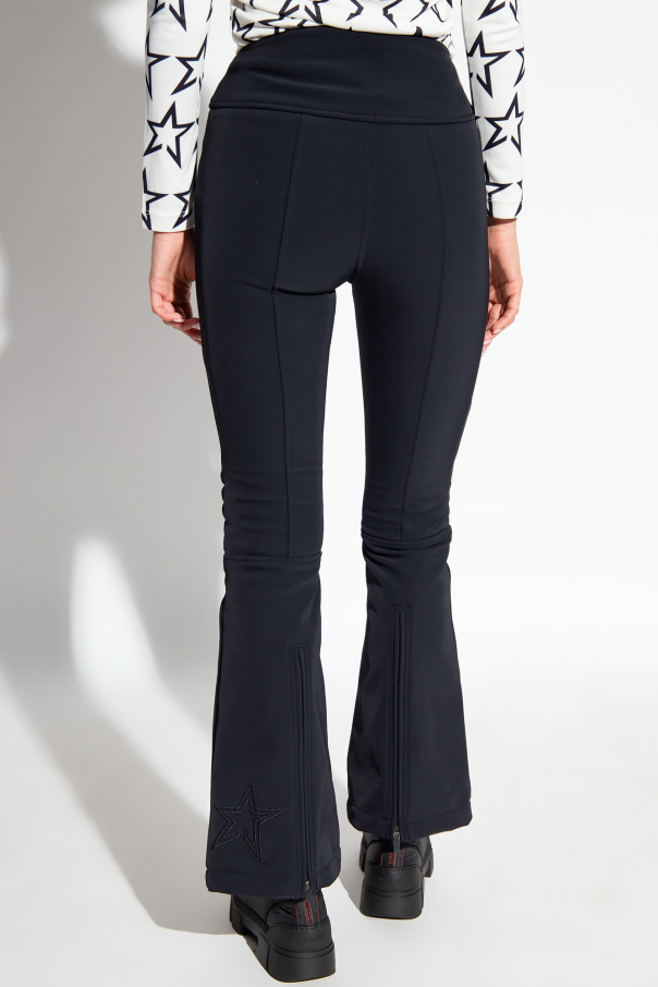 Black ski trousers from Perfect Moment. Made from stretch PRIMARISTO® fabric with a DERMIZAX® membrane for water-repellent and sweat-wicking properties, this pair features zip and snap fastenings, the brand’s signature star logo, two zip pockets and flared legs with zip details.