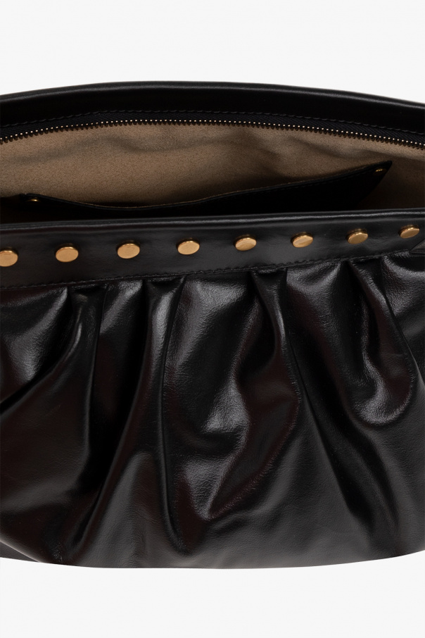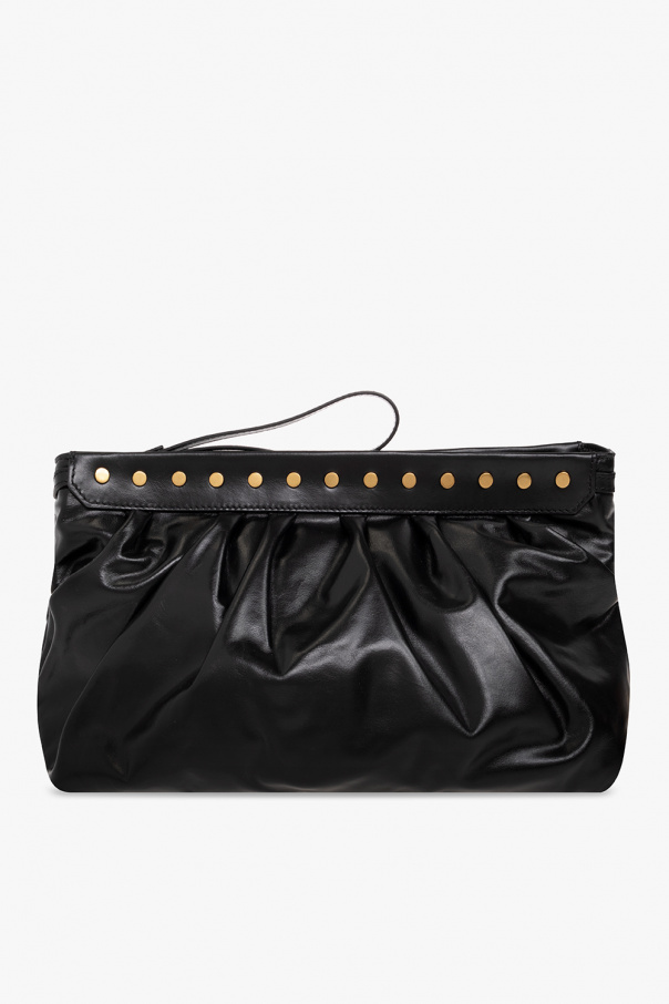 Black ‘Luz’ handbag from Isabel Marant. Crafted from calf leather, this design secures with a zipper and features a printed logo and rivet embellishments, a detachable wrist strap on the side, gold-tone metal hardware and one internal compartment with a slip pocket.