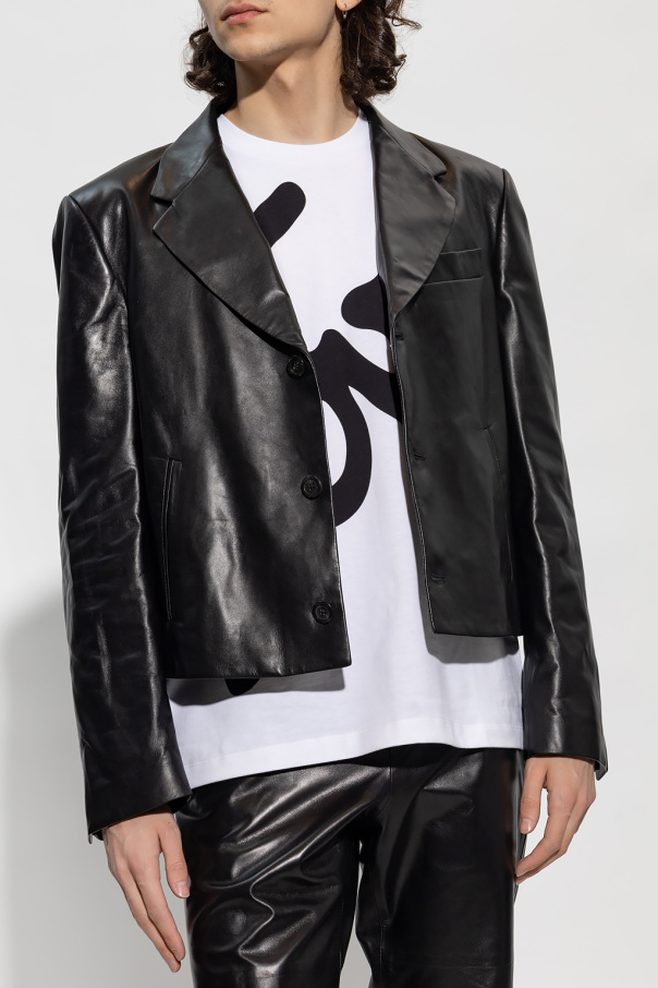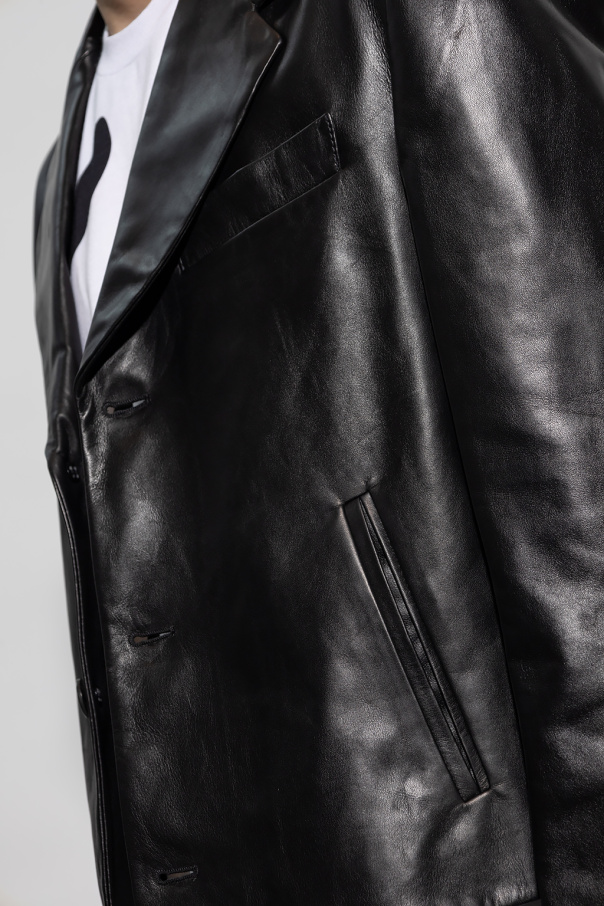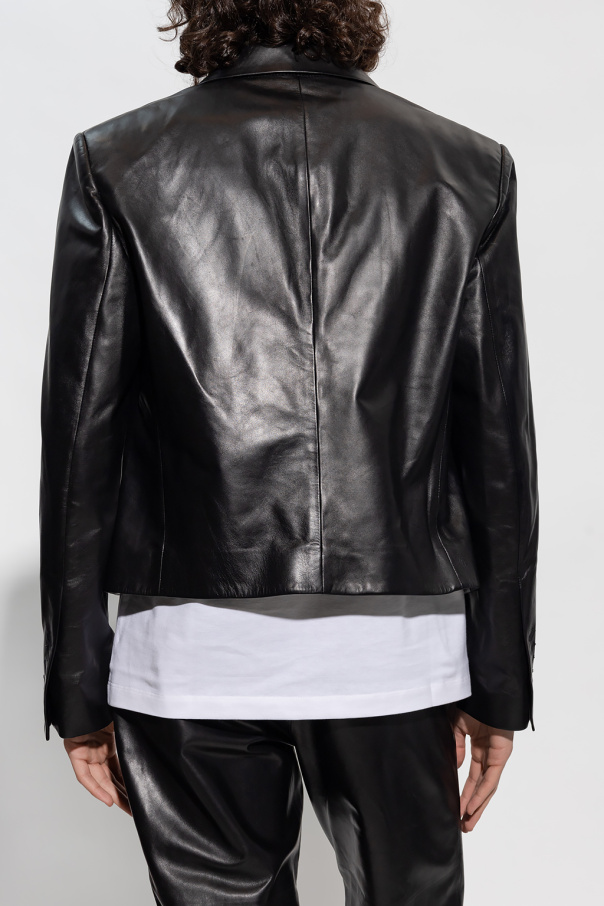 Black blazer from FERRAGAMO. Made of lamb leather, this design features button fastenings, notch lapels, three slip pockets and long sleeves with slits.