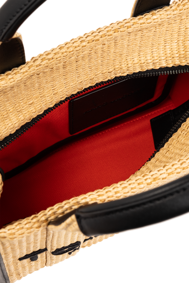 Introducing the \'The Tote Small\' by the esteemed designer Marc Jacobs, a quintessential piece that radiates sophistication and practicality. Crafted with an exquisite blend of straw and leather, this \'shopper\' type bag presents a delightful texture and visual lightness. Its dominant beige hue is elegantly contrasted with bold, black lettering on the front, proudly displaying \"THE TOTE BAG\" and \"MARC JACOBS,\" making it an iconic statement piece. Attention to detail is evident in the black finishes, including the handles and side trim, as well as the discreet rectangular patch featuring the designer\'s logo in white on the back. The interior, lined with a striking red fabric, offers a vivid contrast and is equipped with a zip closure at the top for securing your essentials. Additionally, a small internal pocket, also with a zip, provides added convenience. Flexibility in wear is assured with a detachable and adjustable black strap, made from a robust material and fitted with a metal clasp for easy attachment. Whether carried by hand or draped over the shoulder, \'The Tote Small\' ensures elegance without compromising on functionality. Why Purchase This Product? Exclusive Design: A unique blend of materials and the distinguished Marc Jacobs branding. Versatile Functionality: Spacious interior with secure zip closure and an additional internal pocket. Adjustable Comfort: Comes with a detachable, robust shoulder strap for varied carrying options. Striking Contrast: The bold exterior coupled with a vividly lined interior makes for an unforgettable accessory.