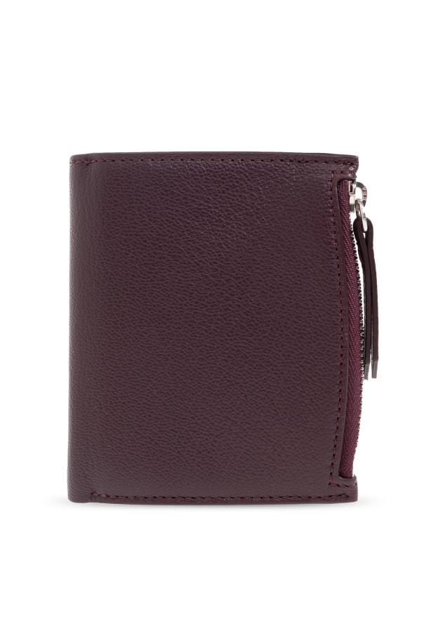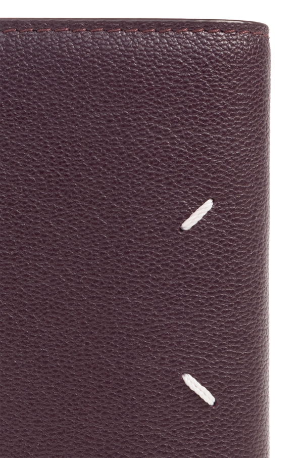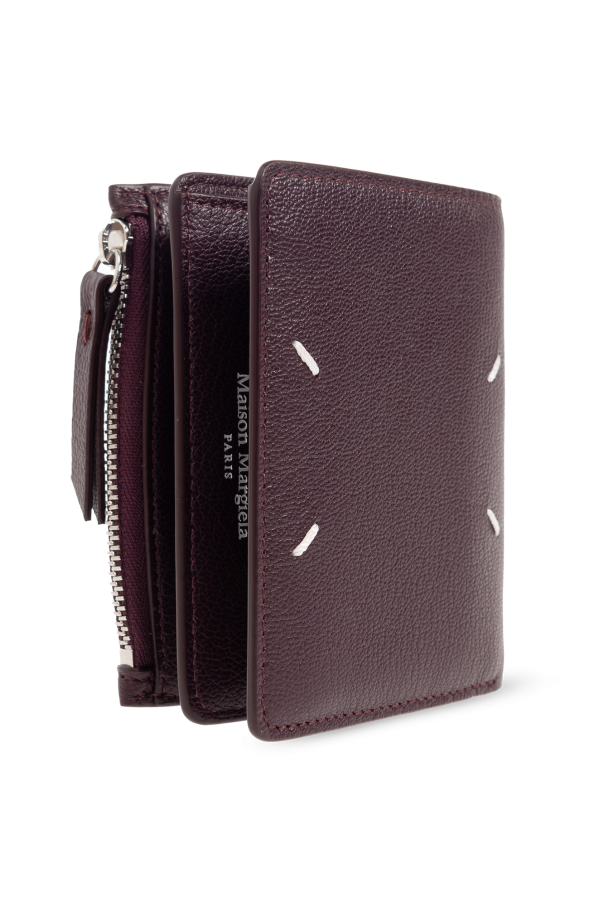 Purple bifold wallet from Maison Margiela. Made of leather, this item features the brand’s signature white stitches, zipped coin pocket and silver-tone metal hardware. It has one bill compartment and eight card slots inside.