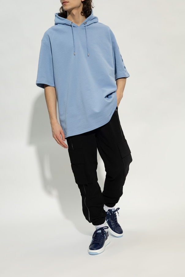 Navy and blue ‘B-Court’ sneakers from Balmain. Made of leather, this lace-up pair features a logo detail and rubber sole in blue and white.