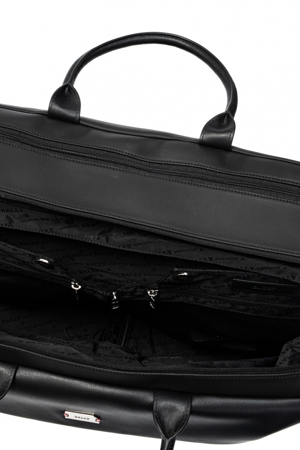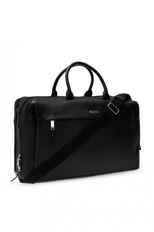 Black 'Verger' weekender from Bally. Featuring silver-tone metal hardware including the label's logo plaque on the front, this item fastens via two-way zip closures and employs, an external zip pocket on the front, slip pocket on the back, two half-round handles, a detachable and adjustable shoulder strap and interior with two separate compartments. One of them houses one snap-fastened pocket and two zip pockets, while the other is a host to two zip pockets.