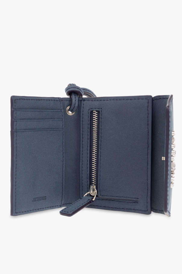 Navy wallet from Jacquemus. Made of leather, this design features snap closure, silver-tone metal logo detail and a detachable strap. It has a zipped coin pocket, two slip pockets and three card slots inside.