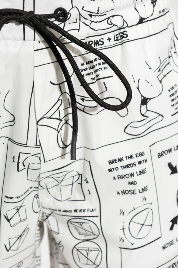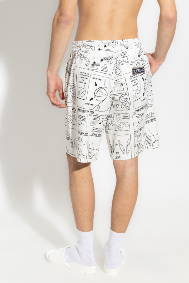 White shorts from Iceberg. Crafted from cotton, this pair features an elastic drawstring waistband, decorative pattern in black, four slip pockets and wide legs.