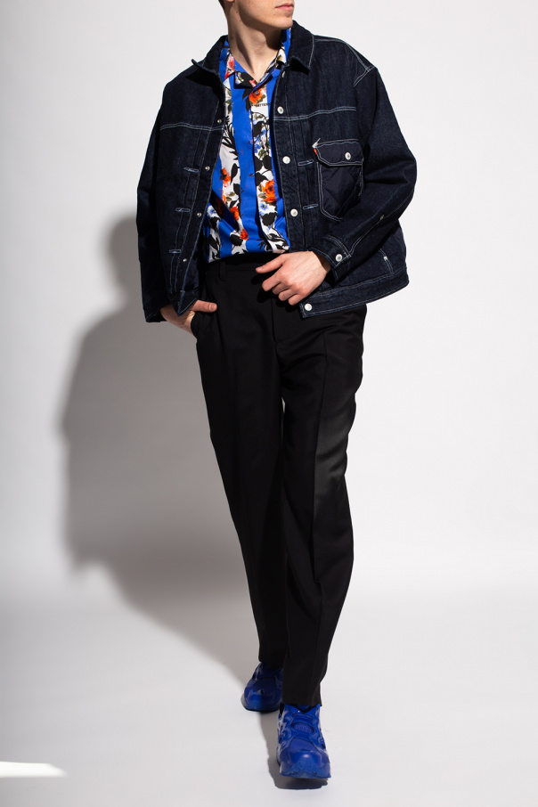 Navy quilted denim jacket from Levi’s, the ‘Red’ collection. Crafted in cottonised hemp denim, this garment features snap fastening, distinctive white stitching details and a snap-fastened flap pocket on the front.