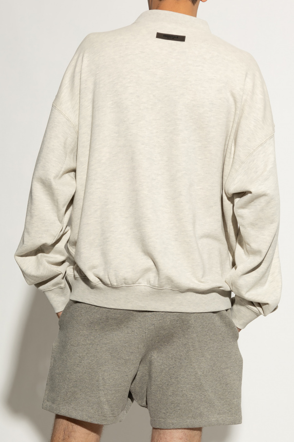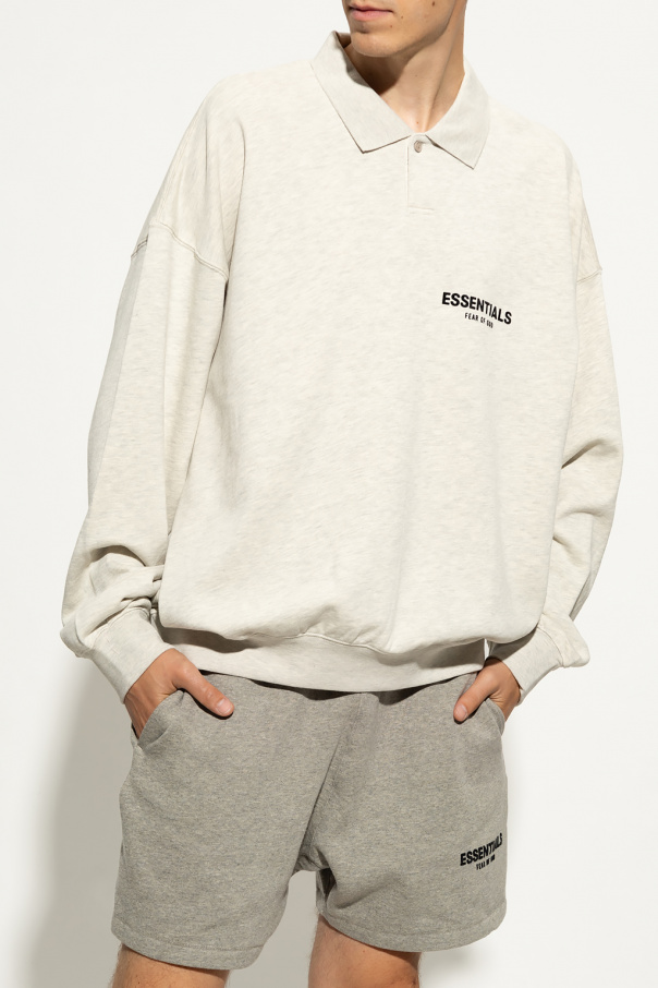 Light grey polo sweatshirt from Fear Of God Essentials. Made from cotton, this style features a collar with a button placket and elasticized trims on the bottom hem and cuffs.