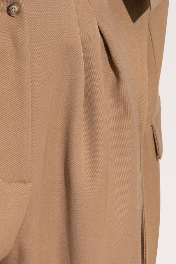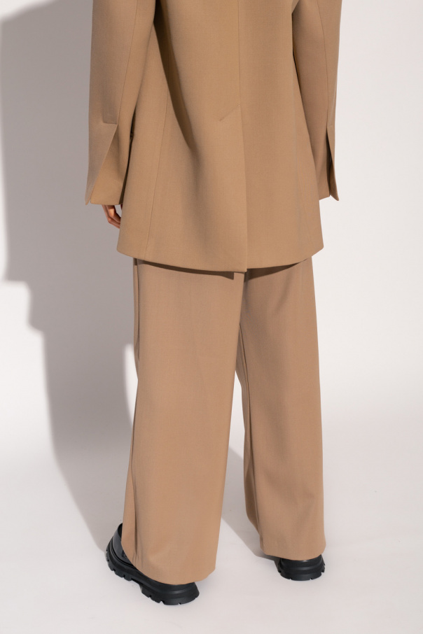 Beige ‘Moschato’ trousers from The Mannei. Made of cotton, this pair features a zip fly with a button, two frontal slip pockets, distinctive pleats at the waist and wide legs.