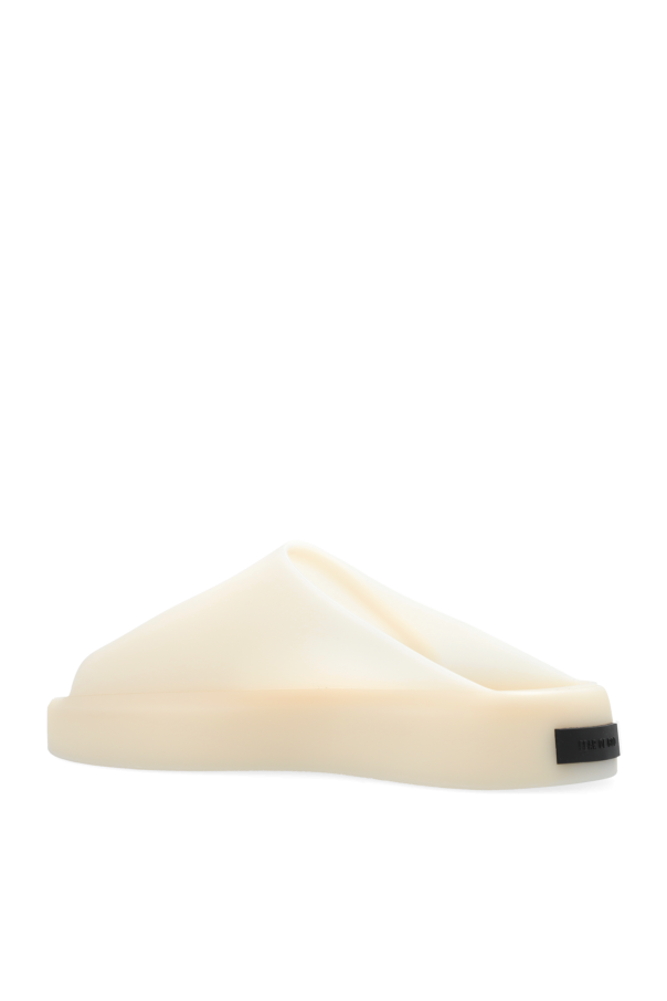 Introducing the ‘Los Feliz’ Cream Rubber Slides from the exclusive collection by Fear of God. These slides epitomize minimalist elegance with their modern, slip-on design and unadorned, sleek silhouette. Crafted from premium rubber, these slides feature a smooth, matte finish that is both water-resistant and easy to clean. The full-front design incorporates a toe opening for enhanced comfort and breathability, while the thick, uniform sole ensures exceptional walking comfort. A subtle yet distinctive touch is the designer\'s logo, elegantly positioned on a small, dark rectangular element at the back of the slides, adding a hint of understated sophistication. Why Choose This Product? Exclusive design by Fear of God, founded by Jerry Lorenzo. Modern, minimalist aesthetic. Premium rubber construction for durability and water resistance. Comfortable and breathable with a full-front and toe opening. Thick, uniform sole for superior comfort. Subtle designer logo for a touch of elegance.