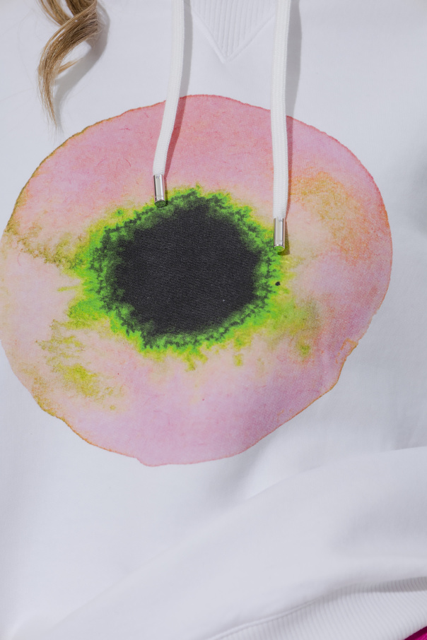 White sweatshirt with a drawcord-adjustable hood from Chloé. Crafted from cotton jersey with a relaxed fit, this style showcases a colourful graphic print accompanied with a logo and ribbed trims on the bottom hem and cuffs.