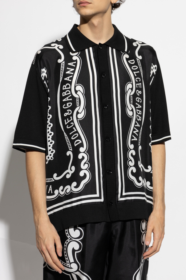 Introducing the Short Sleeve Shirt by Dolce & Gabbana, a masterpiece of sartorial elegance that redefines luxury. This black shirt is adorned with a majestic baroque print, featuring exquisite white motifs against a profound black background, and prominently showcases the iconic \"DOLCE & GABBANA\" inscription. Crafted from a luxurious blend of silk, cotton, and polyamide, this shirt offers an unparalleled combination of softness and breathability, ensuring supreme comfort. Its classic collar and short sleeves, trimmed with refined white piping, lend an air of sophisticated elegance. The black buttons perfectly complement the overall aesthetic, exuding a seamless harmony. This shirt, part of an exclusive collection, is a testament to Dolce & Gabbana\'s unmatched craftsmanship and distinctive design ethos. The Italian brand, founded in 1985 by Domenico Dolce and Stefano Gabbana, continues to captivate the world with its lavish embellishments and innovative elegance. Why Buy This Product? Exquisite baroque print with prominent branding Luxurious fabric blend for comfort and style Part of an exclusive designer collection Iconic design by a world-renowned fashion house
