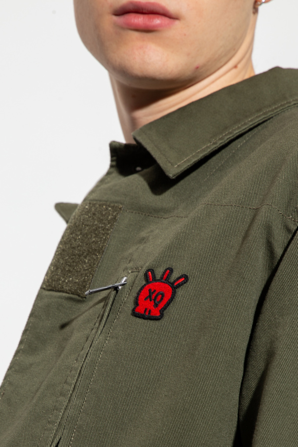 Khaki ‘Kiddo’ jacket from Zadig & Voltaire, the ‘XO Project’ collection. Fastened with buttons, this garment features a ‘Skull XO’ red patch, buttoned epaulettes at the shoulders, two zip pockets, two snap-fastened pockets, long sleeves and drawstrings at the hem.