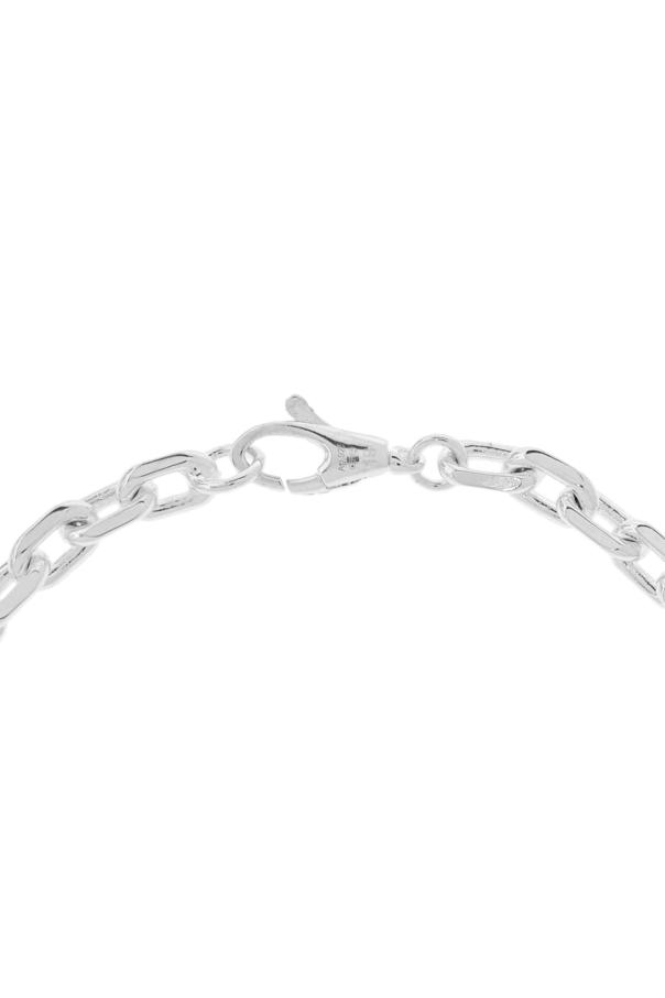Introducing the epitome of sophistication and iconic style: the Gucci \'GG\' Logo Bracelet. This exquisite piece, crafted from 100% 925 sterling silver, showcases the unparalleled craftsmanship and elegant aesthetic synonymous with the Gucci brand. The bracelet\'s distinctive chain features flat, geometrically shaped links, ingeniously interconnected to provide both flexibility and fluid motion, culminating in an adornment that gracefully encircles the wrist. The centerpiece of this bracelet is the large, round \'GG\' logo, a classic emblem that signifies the essence of Gucci\'s luxurious heritage. This feature alone makes the bracelet a recognizable hallmark of high fashion. Further enhancing its exclusivity is the sophisticated clasp, subtly embossed with the designer\'s logo, ensuring that every aspect of the bracelet exudes elegance and refinement. Whether showcased on its own or paired with other pieces from your collection, this bracelet stands out as a testament to impeccable taste. Its design ensures it complements both casual and formal attire, making it a versatile addition to any wardrobe. Why Purchase This Product? Iconic Design: Features the distinguished \'GG\' logo, instantly recognizable as a symbol of Gucci\'s design excellence. Luxurious Material: Crafted from the finest 925 sterling silver, offering durability and a lasting shine. Versatile Elegance: Its elegant design seamlessly transitions from daywear to eveningwear. Exquisite Craftsmanship: Precision-made links and a refined clasp highlight Gucci\'s commitment to quality and attention to detail.