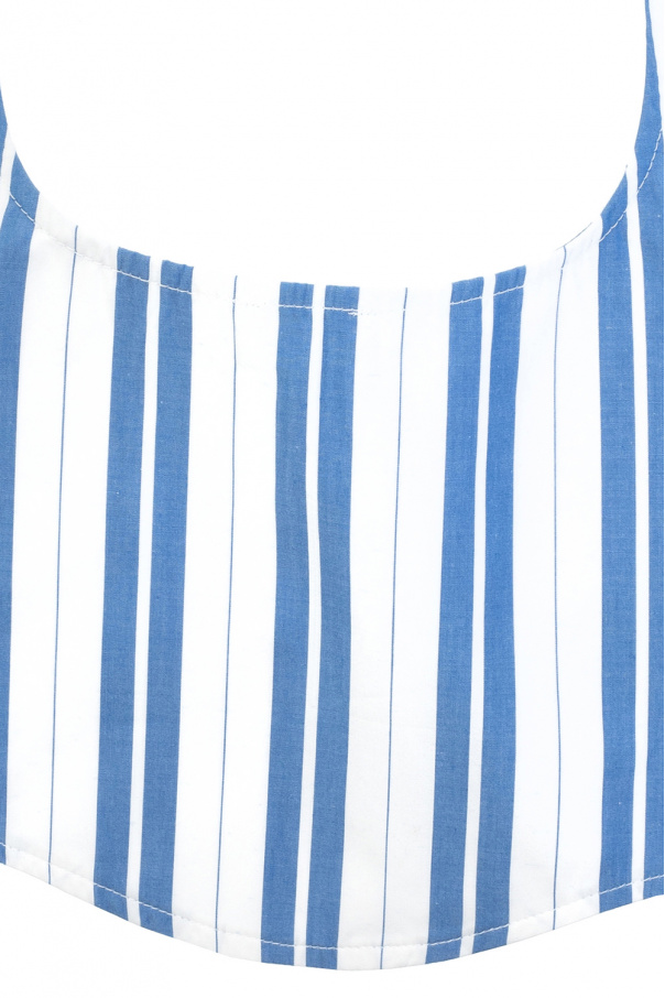 White and blue detached collar from Ganni. Crafted from cotton, this item showcases all-over stripes and a tie fastening.