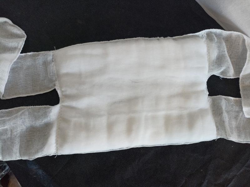 ватно- марлевые повязки сшиты по всем нормам и правилам для школьников младшей школы
