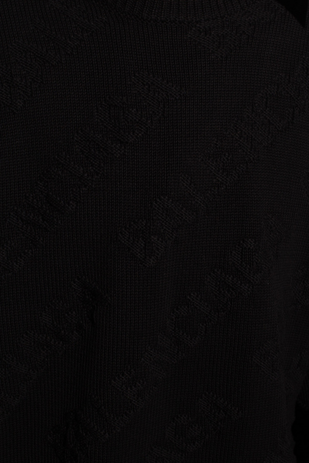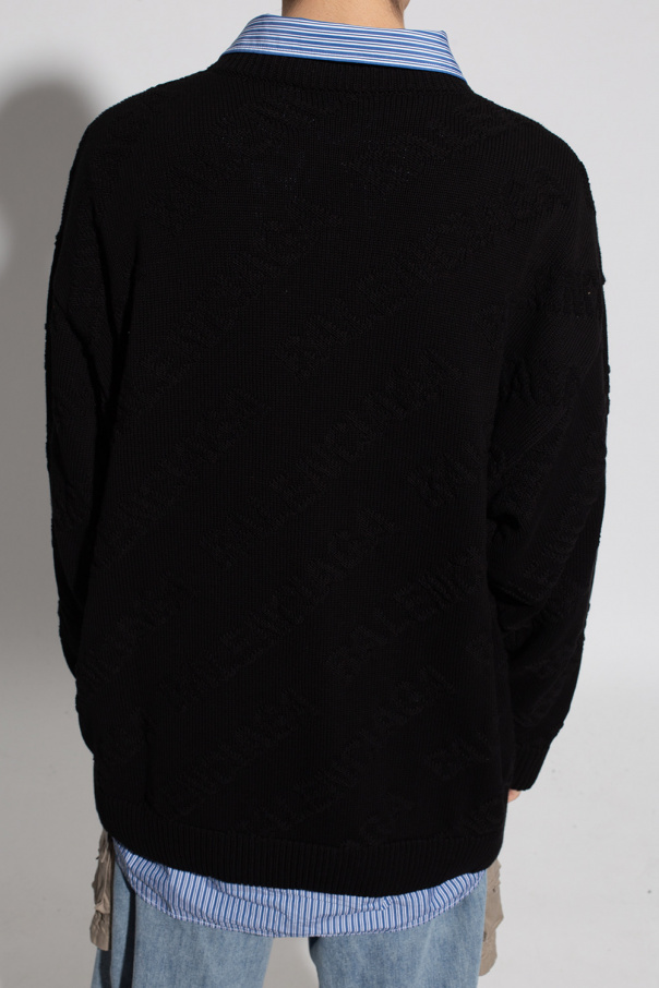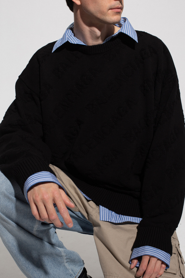 Black crewneck sweater from Balenciaga. Crafted from cotton knit with an oversize silhouette, this jumper has long sleeves and an embroidered logo.