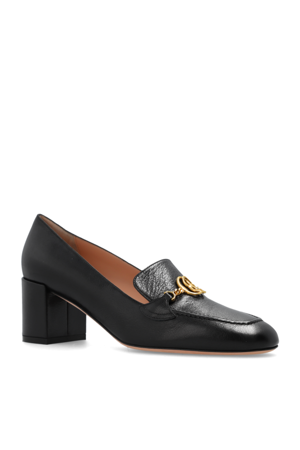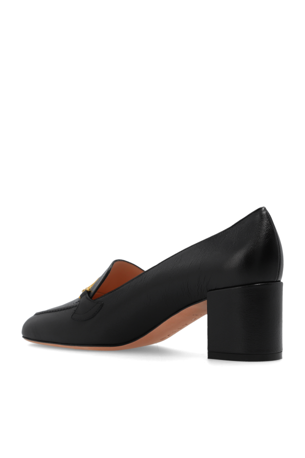 Black ‘Obrien’ pumps from Bally. Made from leather, this model sits on a pink leather sole and features a gold-tone metal logo plaque on the front.