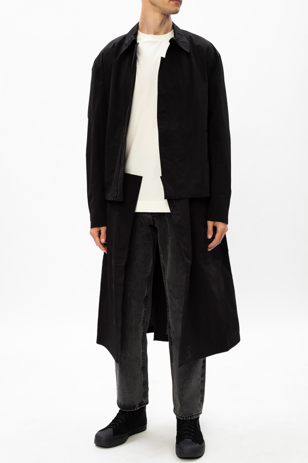 Black coat from Y-3 Yohji Yamamoto. Fastened with a zip, this garment features two zip pockets, two slip pockets, collar with snap fastenings and a detachable bottom part.