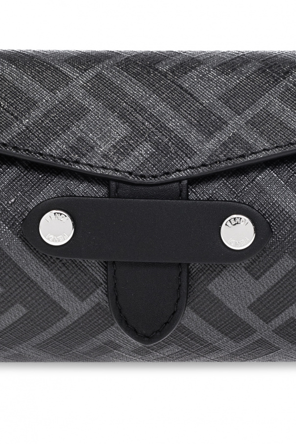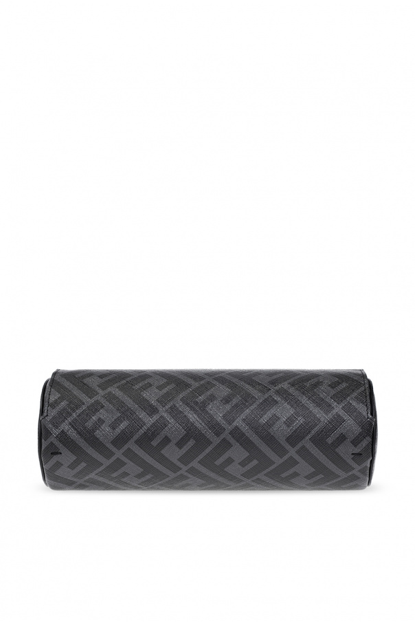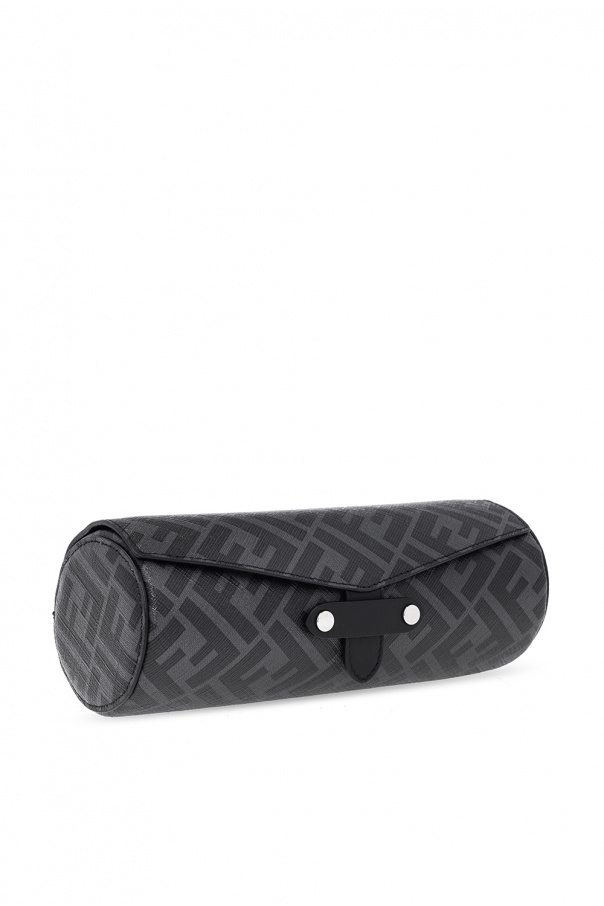 Grey and black watch case from Fendi. Crafted from canvas decorated with a monogram motif, this design features calf leather trims and a snap closure.
