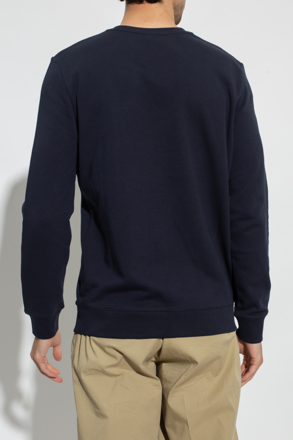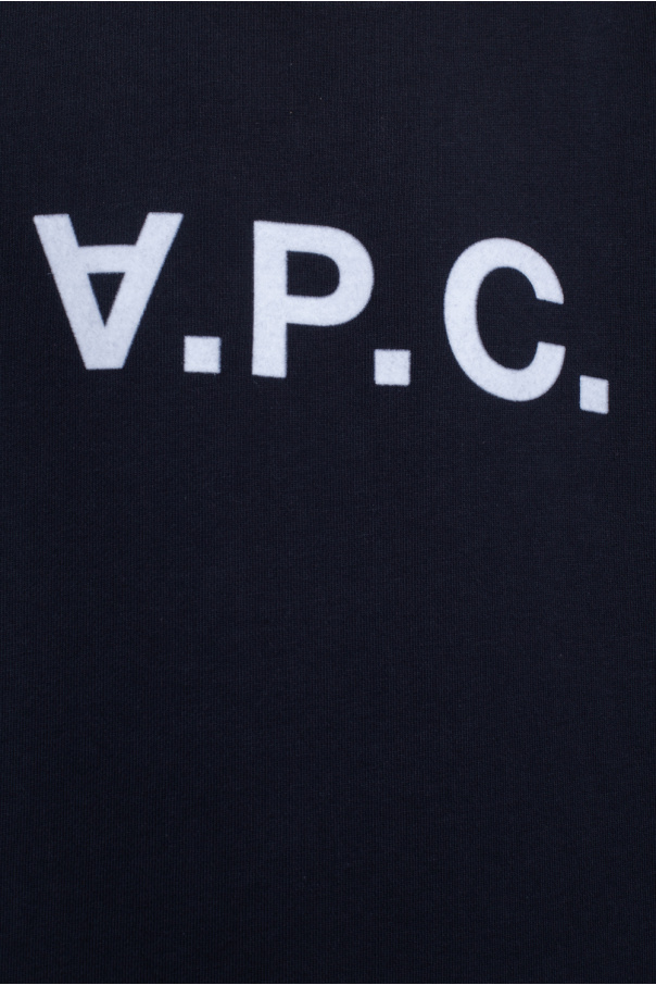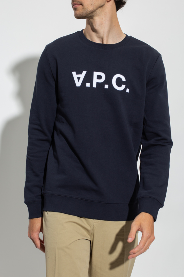 Navy blue crewneck sweatshirt from A.P.C. Crafted from cotton jersey, this style features a white velvet-flocked logo on the front and elasticized trims on the bottom hem and cuffs.