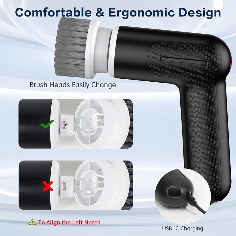 - 【Портативный и беспроводной】Избавившись от длинного шнура, вы можете легко использовать эту беспроводную душевую щетку для уборки в любом углу дома, больше не будет проблем с вилкой и кабелем. Эргономичная, нескользящая ручка позволяет крепко держаться даже липкими или мокрыми руками; суперлегкий, и даже дети могут легко им пользоваться. Вы обнаружите, что уборка дома станет такой легкой.