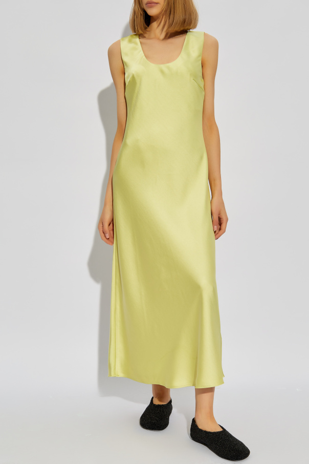 Introducing the Sasumma Dress from the renowned designer Samsøe Samsøe, a quintessence of minimalist elegance and refined taste. Crafted in a radiant shade of light green, this garment transcends the ordinary through its subtle interplay of color and light. Depending on the illumination, the Sasumma dress can appear pale yellow or lime, making it a versatile addition to any sophisticated wardrobe. The dress is meticulously designed with a gently tapered midi silhouette, gracefully reaching mid-calf, ensuring a silhouette that is both flattering and timeless. Made from a smooth, slightly lustrous fabric, the dress suggests the luxury of silk or satin, further elevating its status. The scoop neckline and slightly cut-away back inject a dose of allure, while the absence of any overt branding maintains its understated charm. Distinctive features include a delicate slit on the left side at waist height, adding an intriguing element to its construction, and seamlessly integrated short sleeves that enhance the cohesive elegance of the design. Why Purchase the Sasumma Dress? Made from 100% polyester, offering both luxury and practicality. Unique light green hue that shifts under different lighting. Elegant, body-flattering silhouette with thoughtful design details. Exemplifies the high-quality, minimalist aesthetic of Samsøe Samsøe.