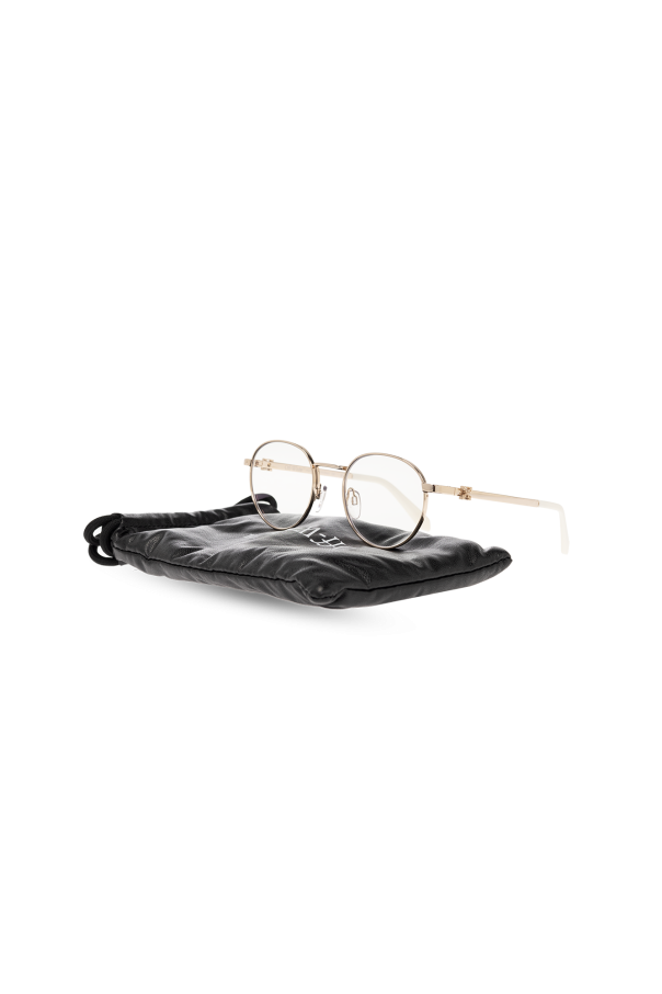 Light gold-tone ‘45’ optical glasses from Off-White. With round metal frames, this model features a single bridge, movable nose pads as well as logo applications and white tips on the temples.
