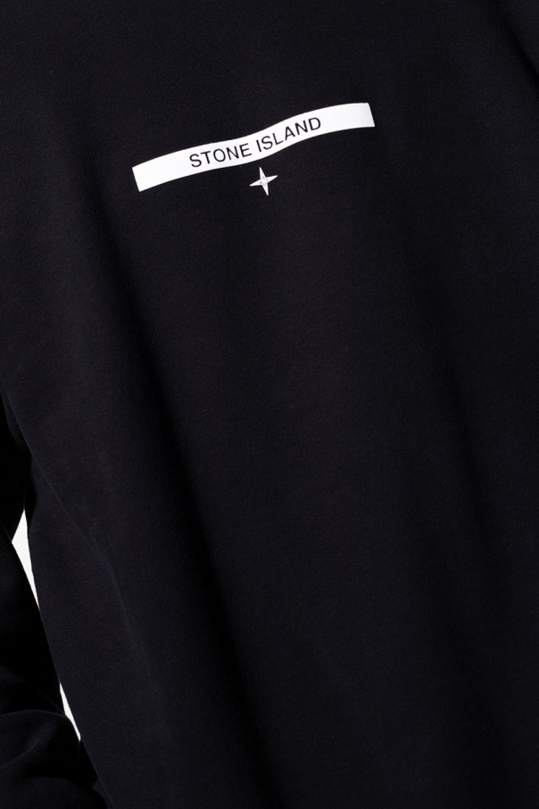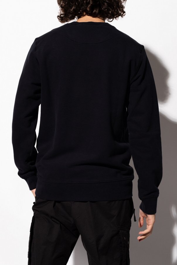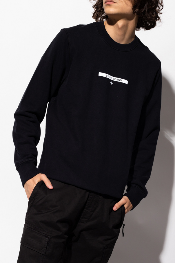 Navy crewneck sweatshirt from Stone Island. Crafted from cotton, this garment is enriched by a white logo print and ribbed trims at the hem and cuffs.