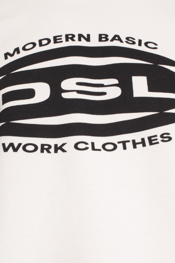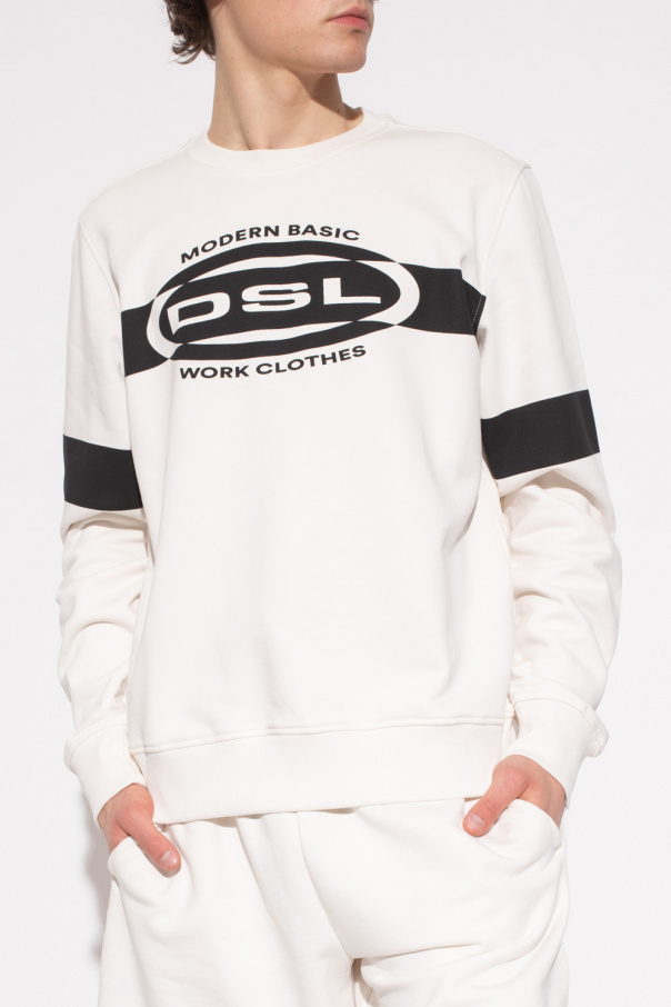 Cream and black \'S-GINN-HS2\' sweatshirt from Diesel. Made of cotton, this crewneck design is enriched by a logo print and ribbed trims at the hem and cuffs.