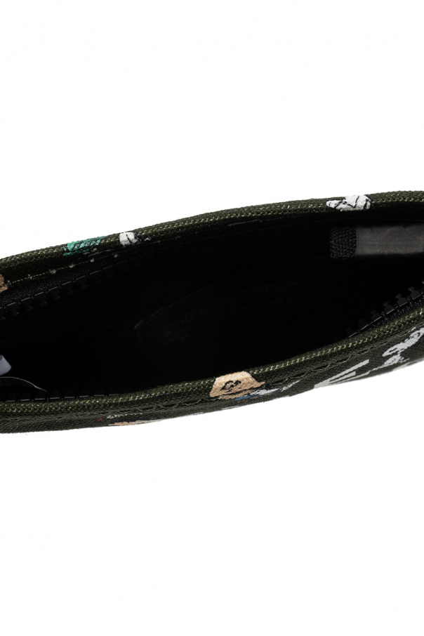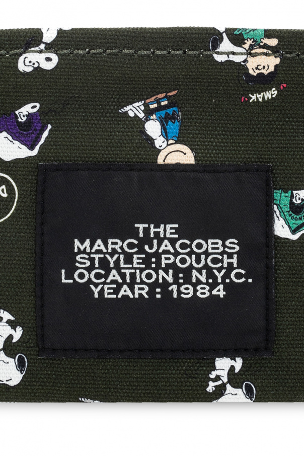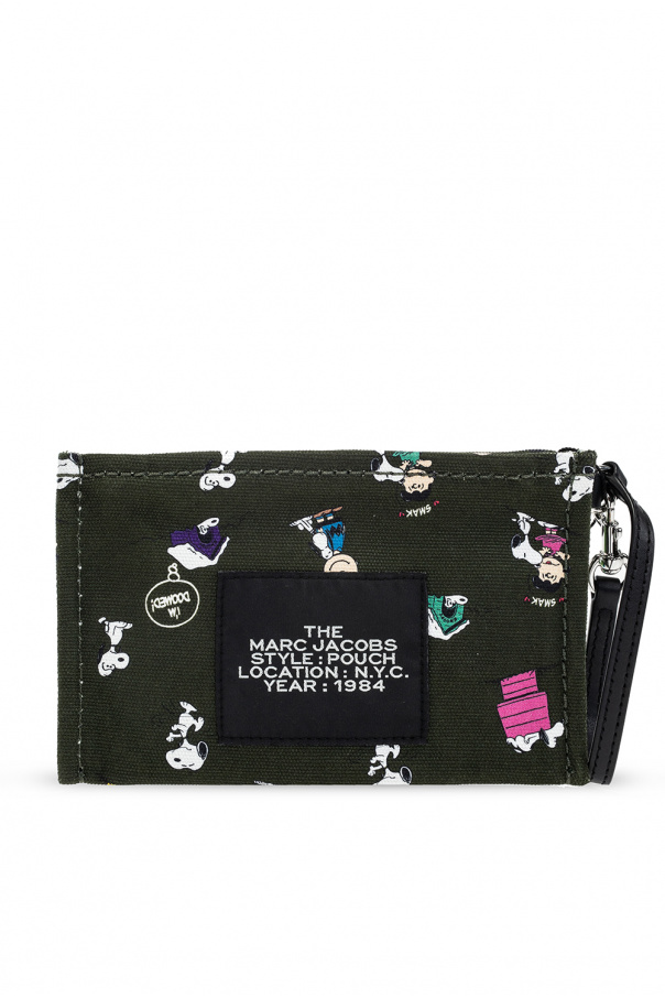 Dark green pouch from Marc Jacobs (The) x Peanuts. Embellished with a colourful graphic motif and a white logo print, this design features a black and white branded patch on the back, a strap with a lobster clasp on the side, silver-tone metal hardware and one internal compartment.