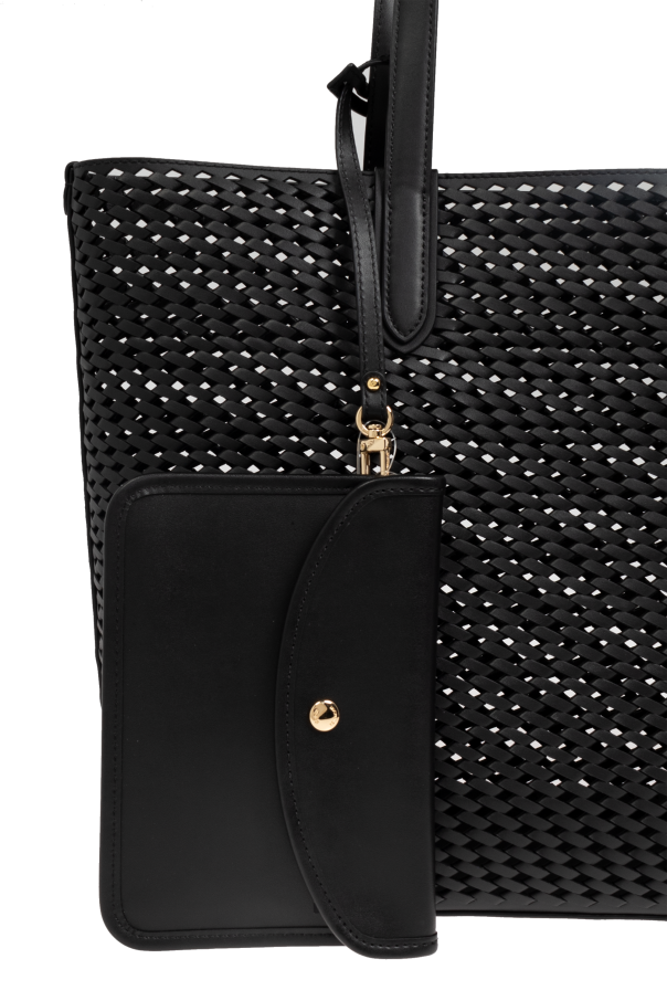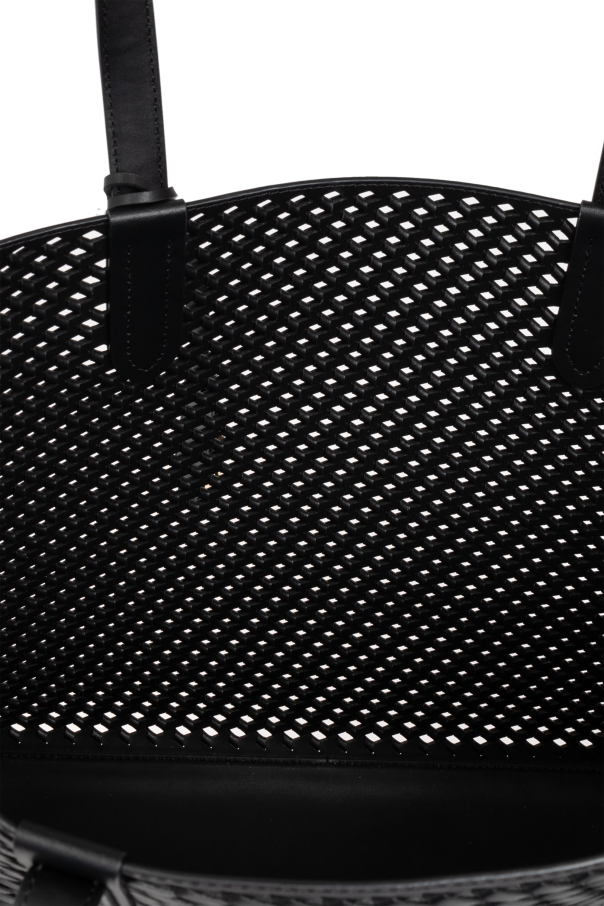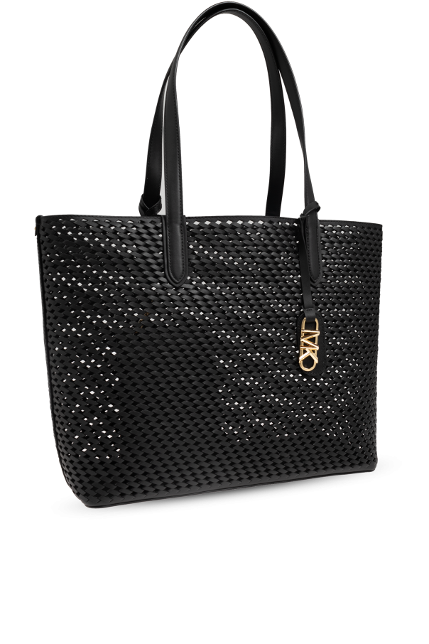 Introducing the Eliza Shopper Bag, an exquisite creation from the renowned American brand, Michael Michael Kors. This luxurious handbag, crafted from the finest leather, epitomizes elegance and modern sophistication. The Eliza bag boasts a classic rectangular shape with two long, sturdy handles, allowing for versatile carrying options—whether on the shoulder or in hand. The dominant black color coupled with a perforated, lace-like structure gives this bag a distinctive and contemporary appeal. Inside, you\'ll find a sleek, black lining that complements its exterior elegance. Adding a touch of prestige, the bag features a gold-tone logo charm on one side, an emblem of its designer\'s esteemed reputation. The Eliza is not just about style; it is also highly functional. It includes a spacious main compartment and a detachable pouch secured with a snap, perfect for organizing smaller items. Why Choose This Product? Timeless Design: Classic rectangular shape with an elegant perforated finish. Premium Materials: Crafted from 100% top-quality leather. Versatile and Spacious: Ideal for daily use, shopping, or city outings. Exclusive Details: Gold-tone logo charm adds a touch of luxury. Functional Add-ons: Includes a detachable, snap-secured pouch for smaller items.