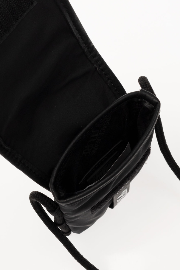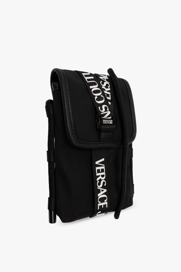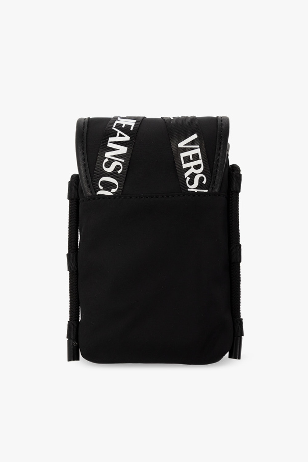 Black ‘V-Webbing’ shoulder bag from Versace Jeans Couture. Fastened with velcro, this design features a strap with a white logo print, adjustable strap and one internal compartment.