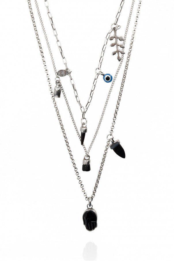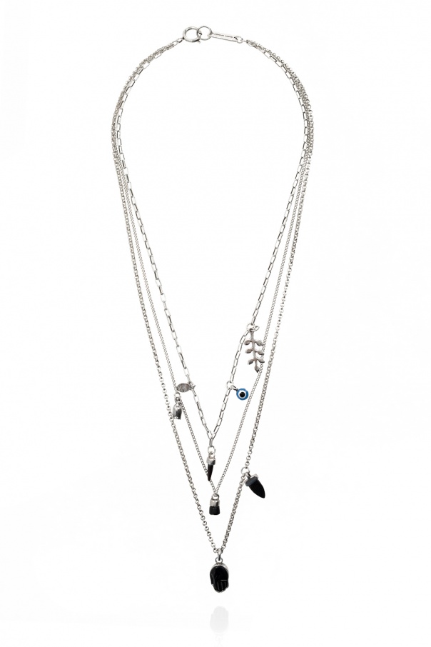Silver-tone multi-layered necklace from Isabel Marant featuring distinctive pendants, including buffalo horns.